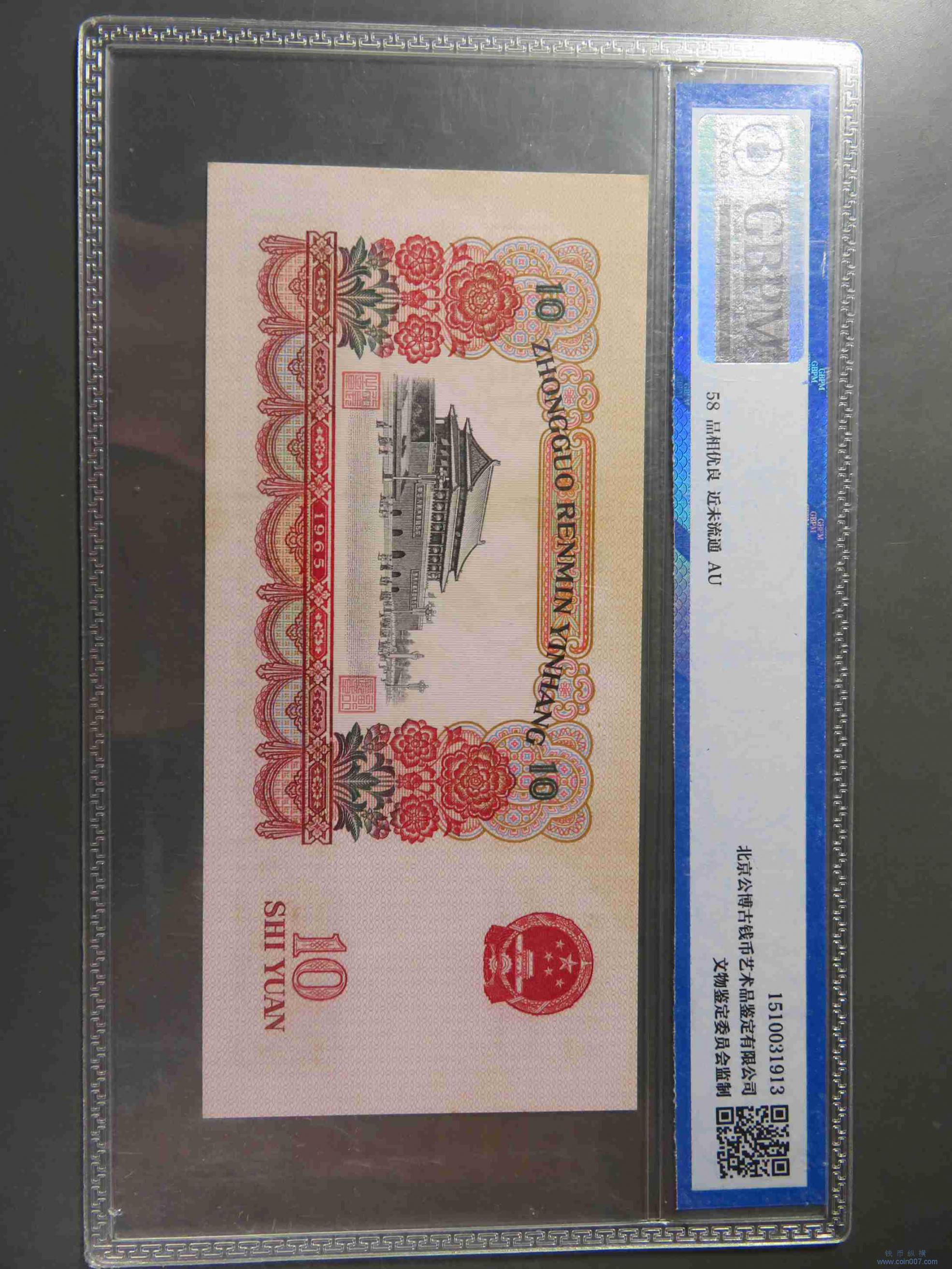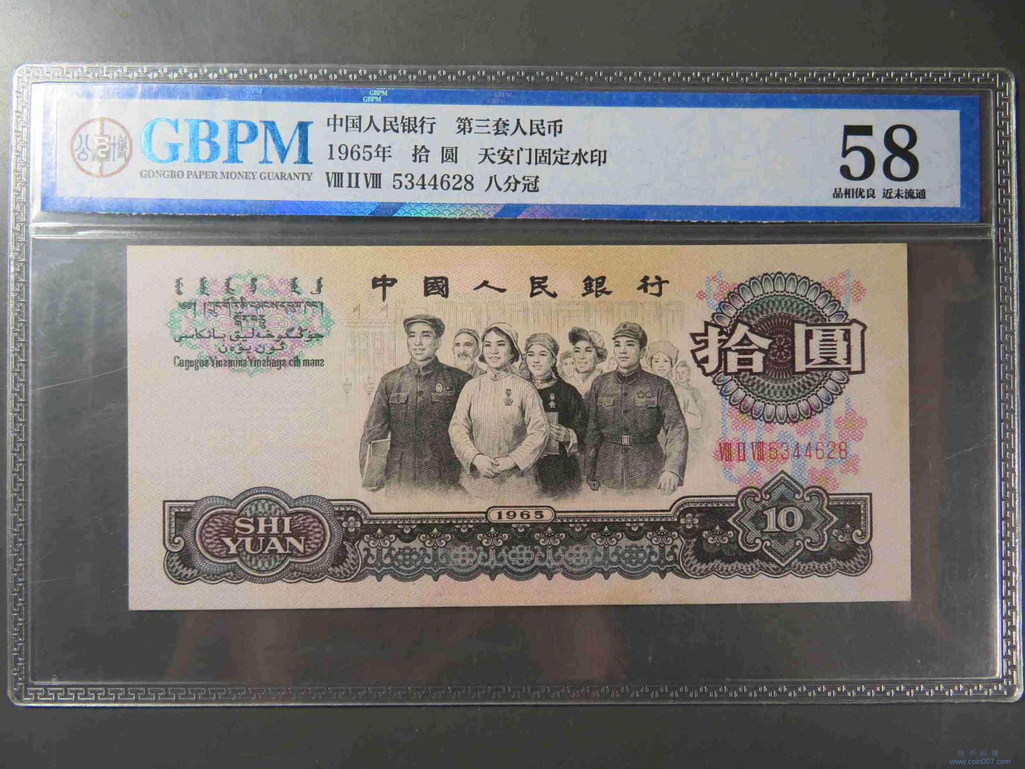 W1408.三版纸币拾元 评级58