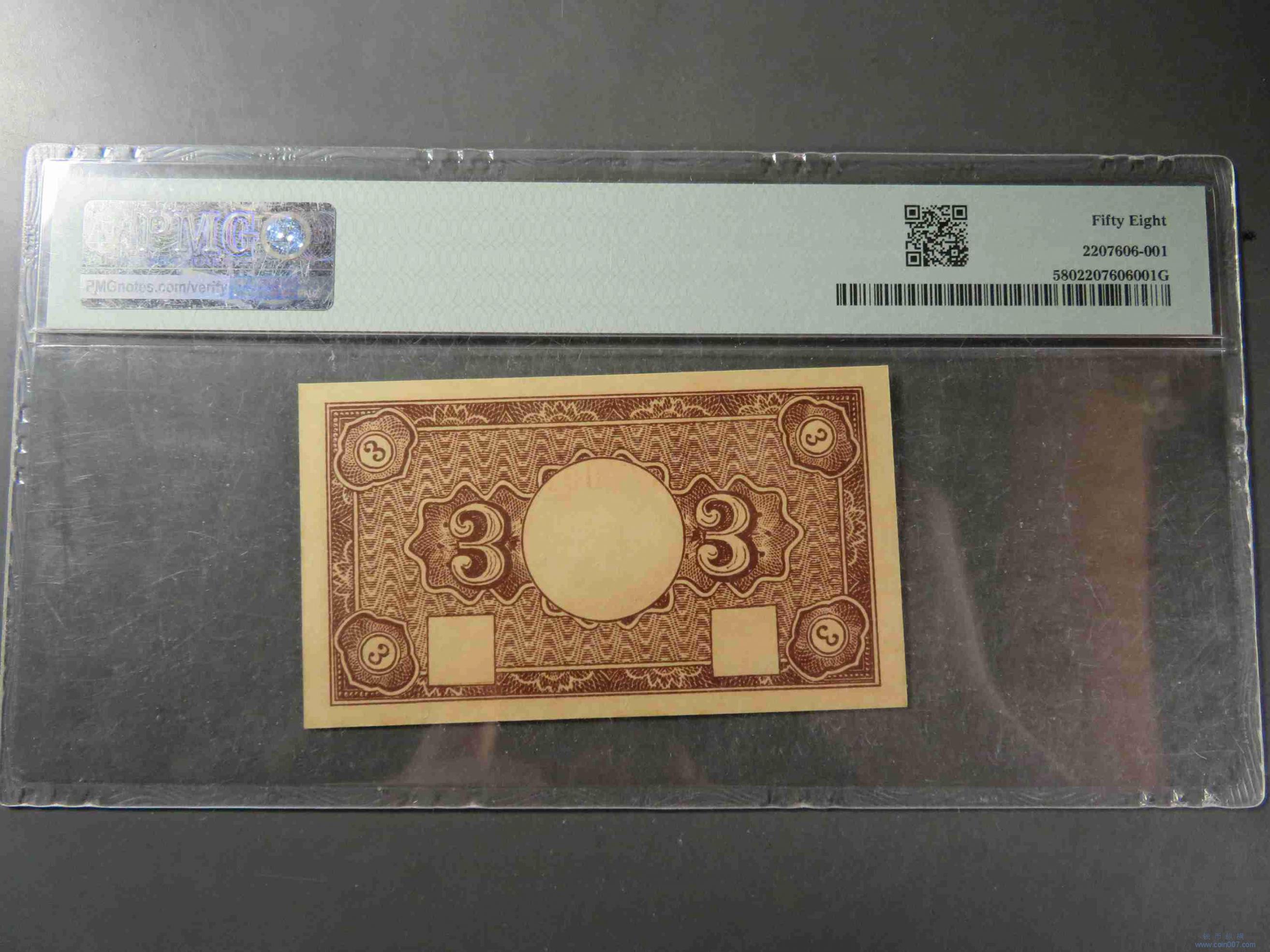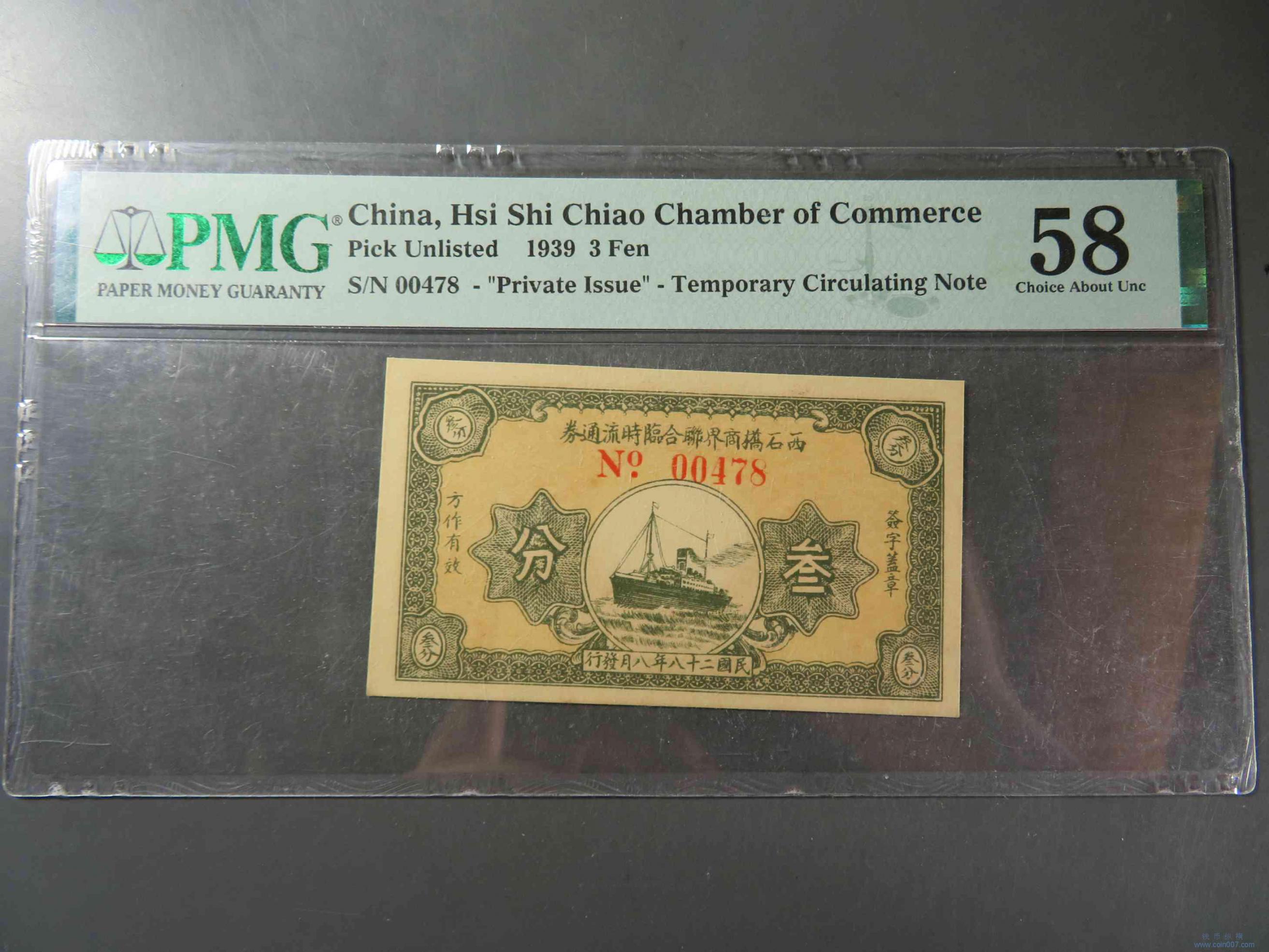 | W1417.西石桥商界联合临时流通券 三分 PMG58 |