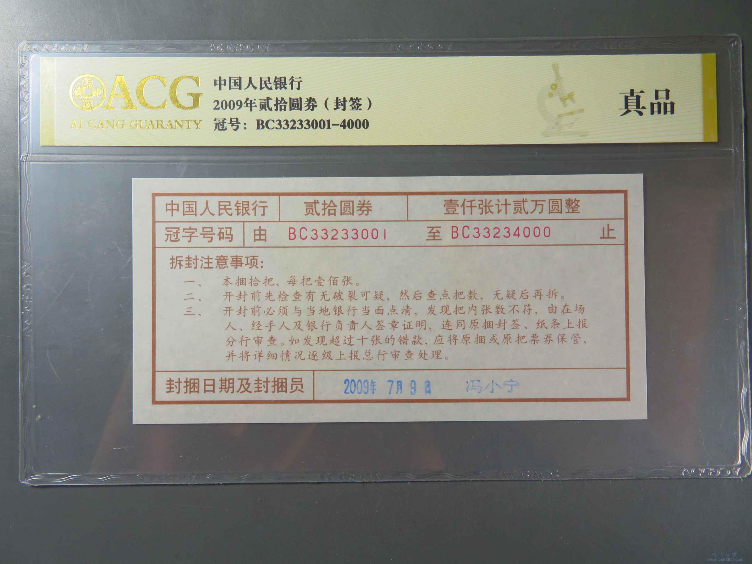 W1426.2009年贰拾元券封签 评级真品