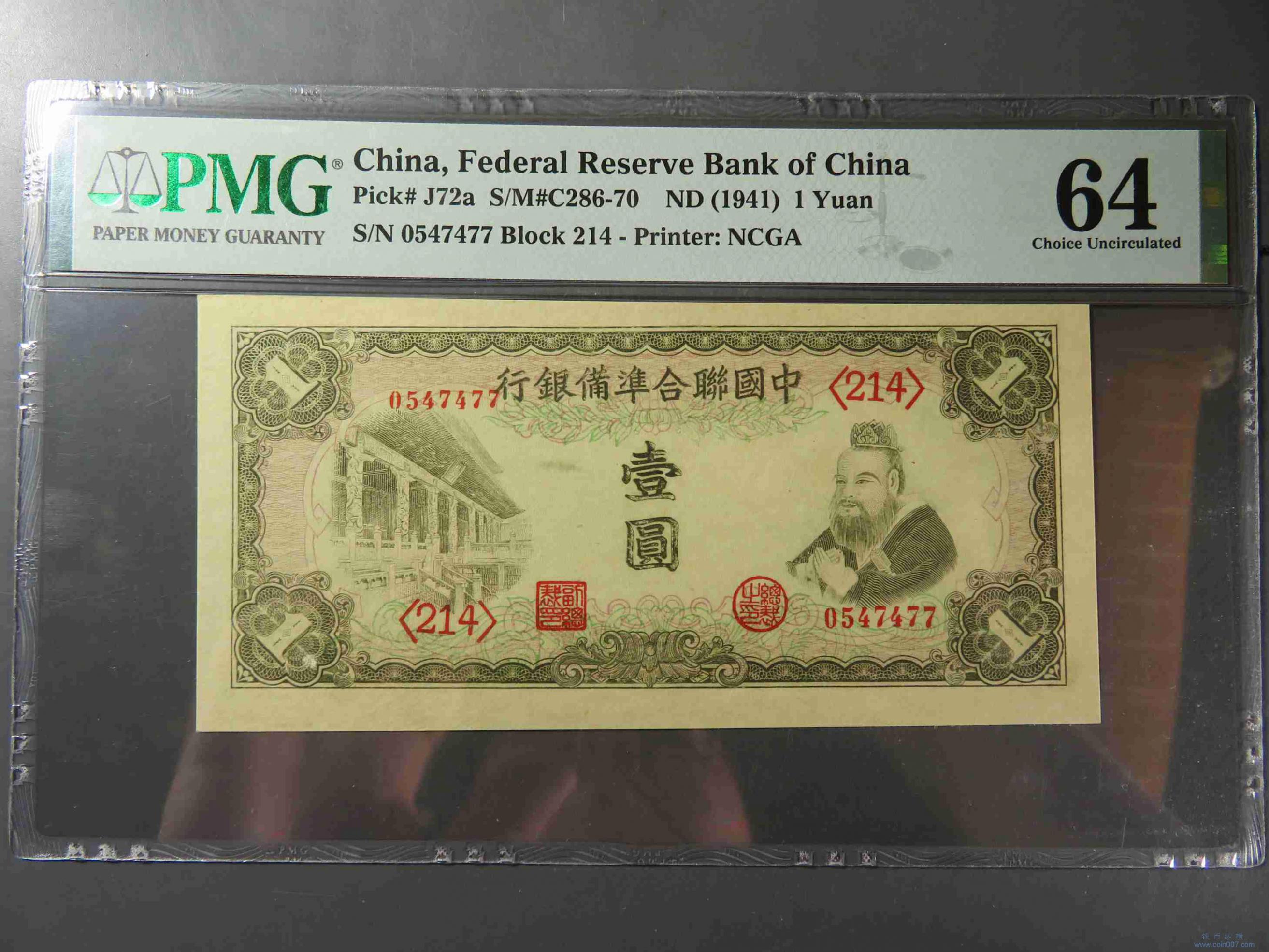 W1429.联准银行壹圆 PMG64