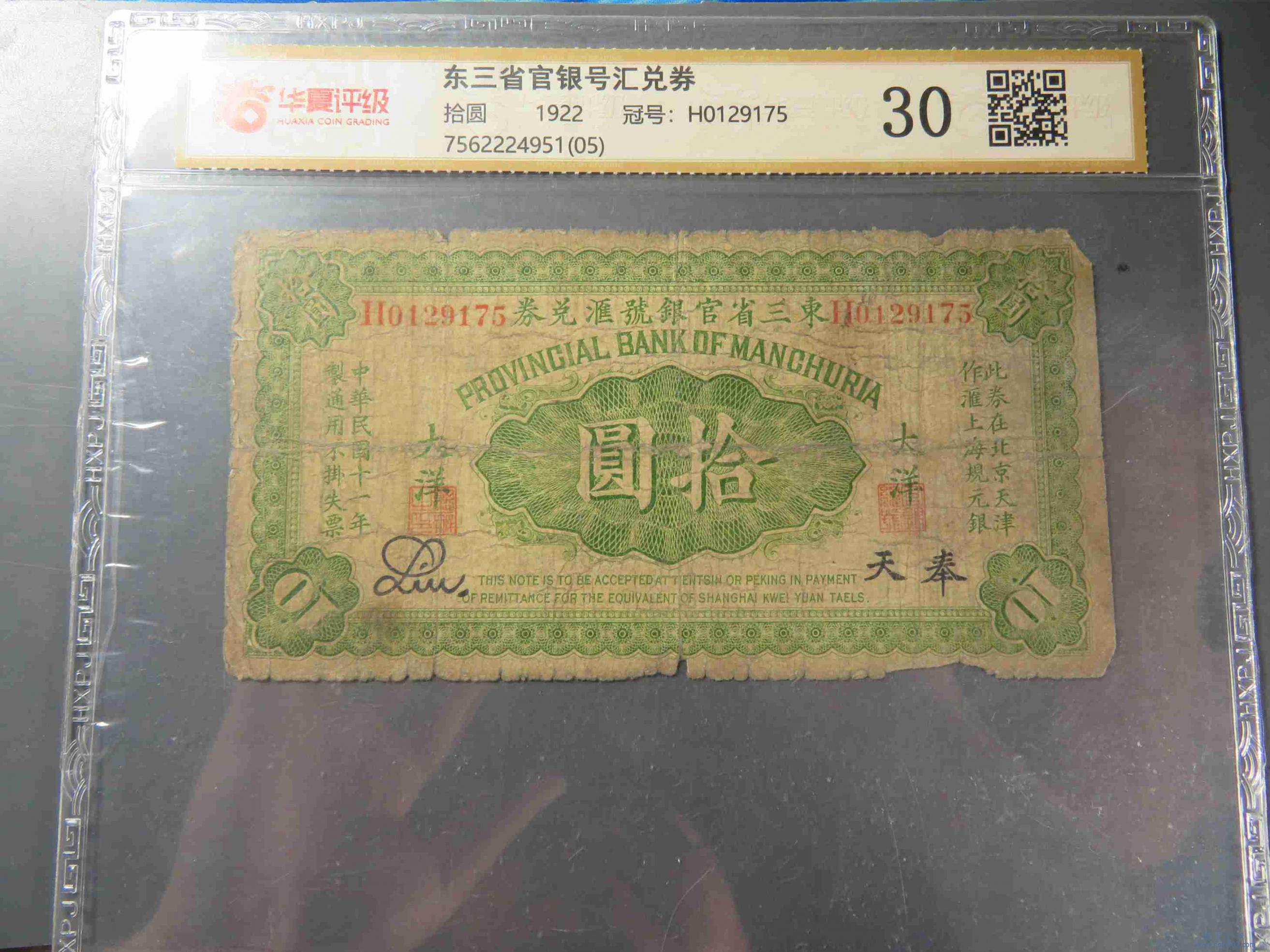 W1450.东三省官银号兑换券 评级30