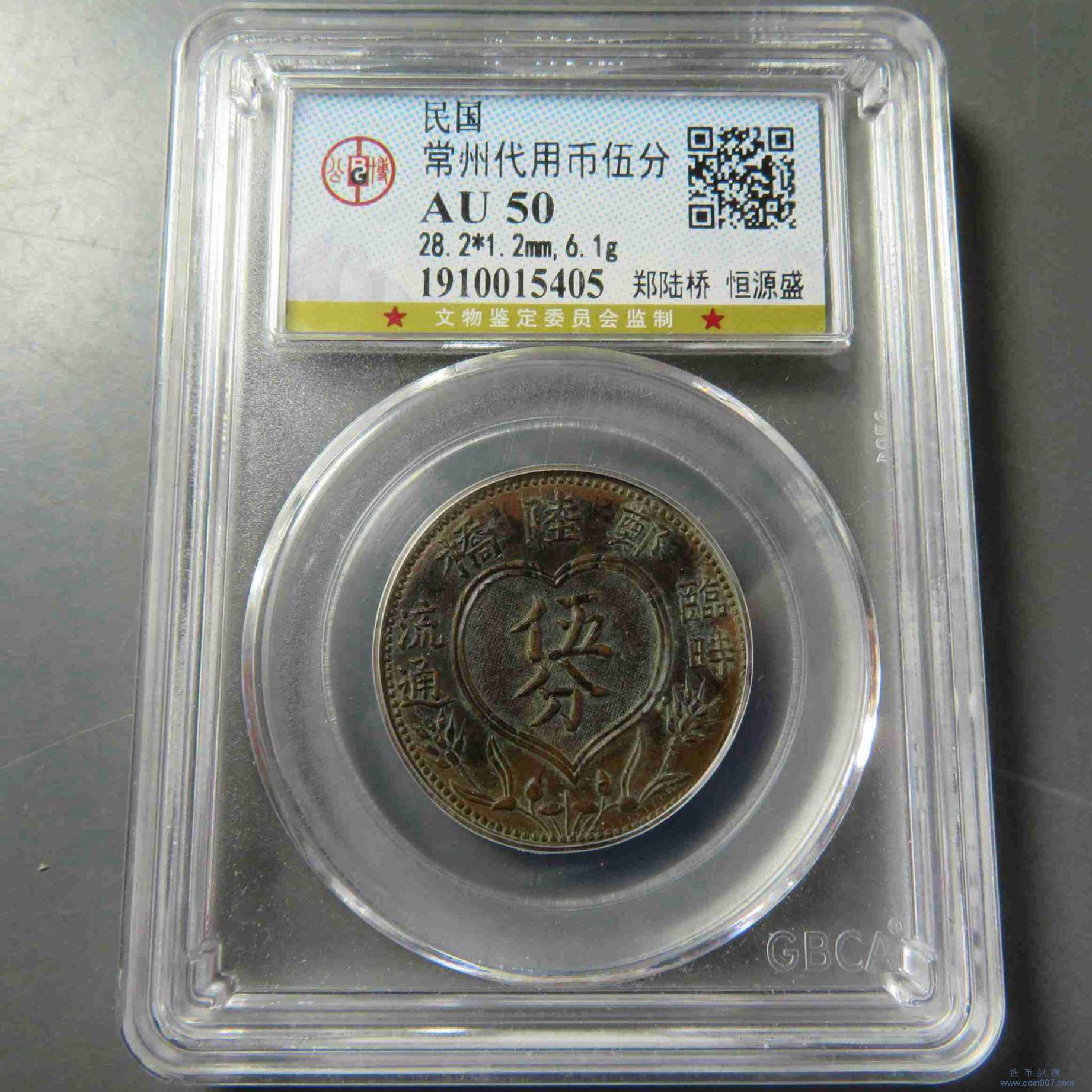 Z0207.民国常州代币伍分 郑陆桥 恒源盛 AU50