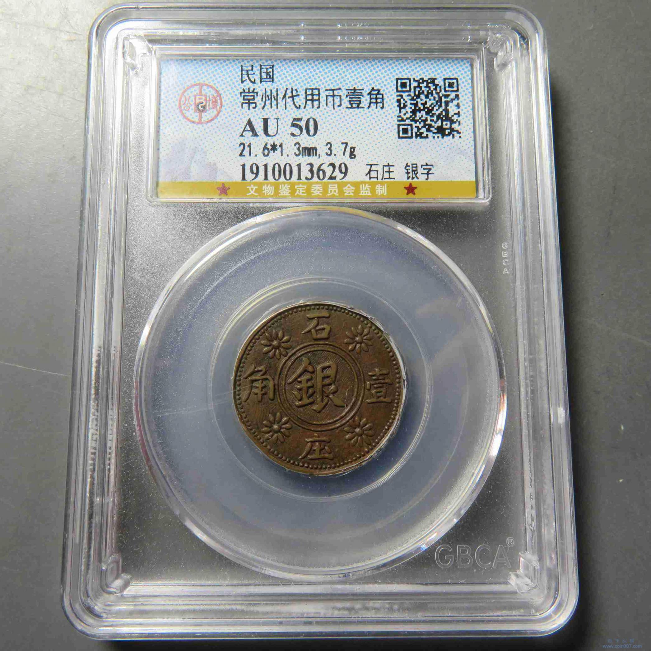 Z0225.民国常州代币壹角 石庄 银字 AU50