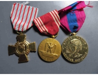 Y0189.法国战斗十字章 美奖章 法服役章 3枚