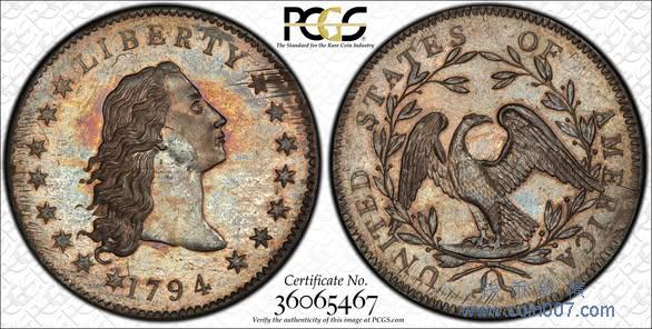 描述:b. PCGS SP66 的 1794 年流髮銀元