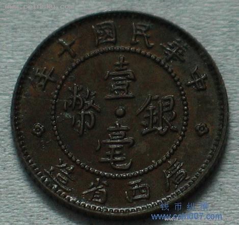 完全未使用民国十年广西一毫银币红铜试样
