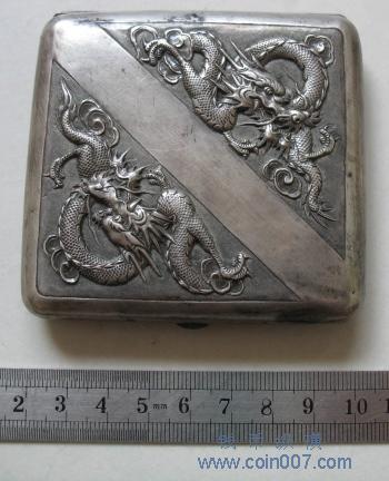 非常精美,雕刻龙,银烟盒 |