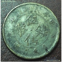 广东省八年伍仙镍币黄铜