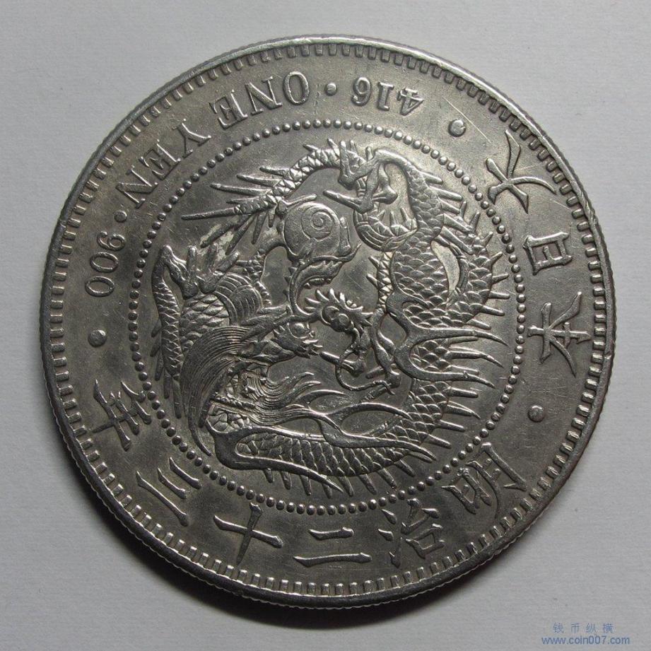 j960.日本 明治23年 一圆龙洋银币,带戳,普美