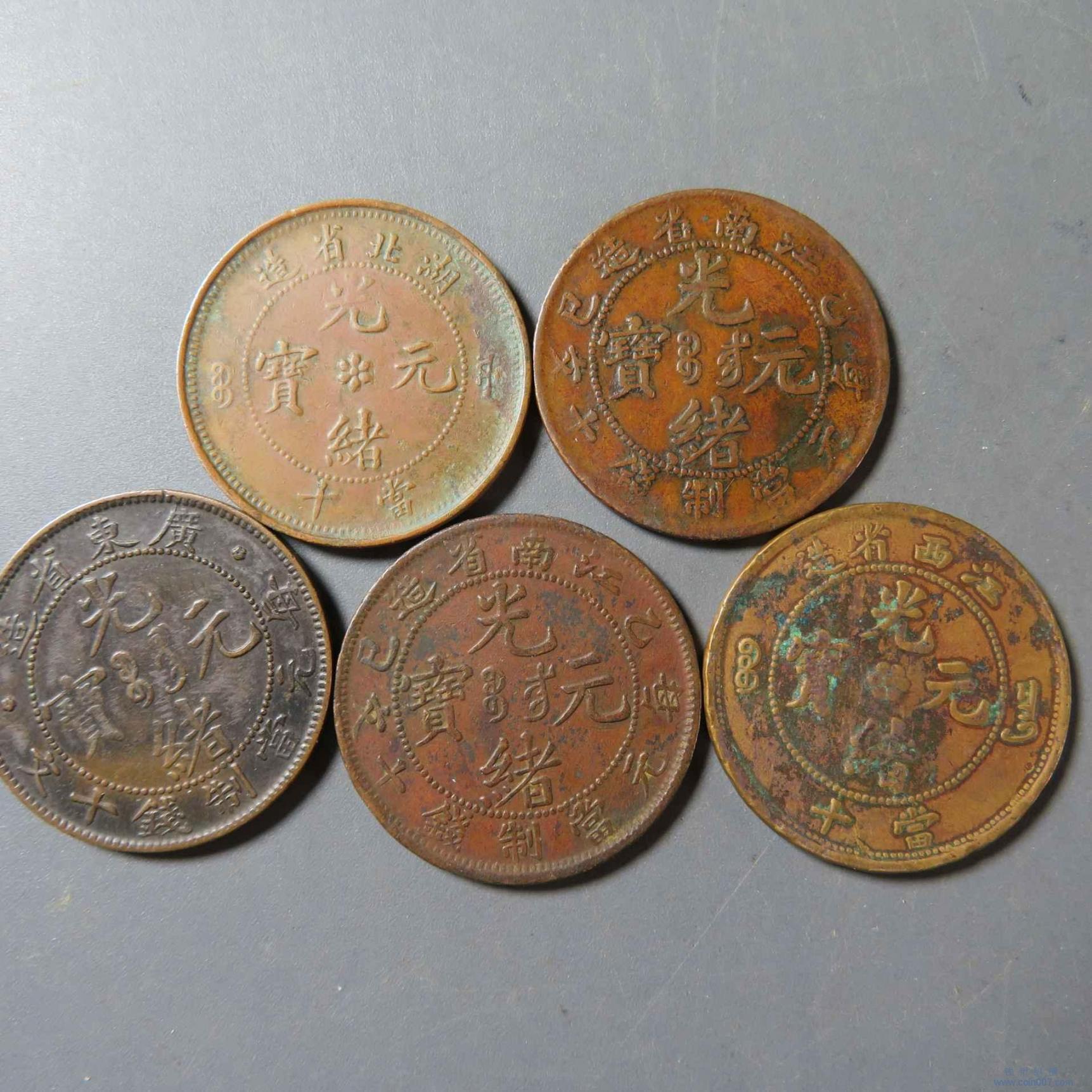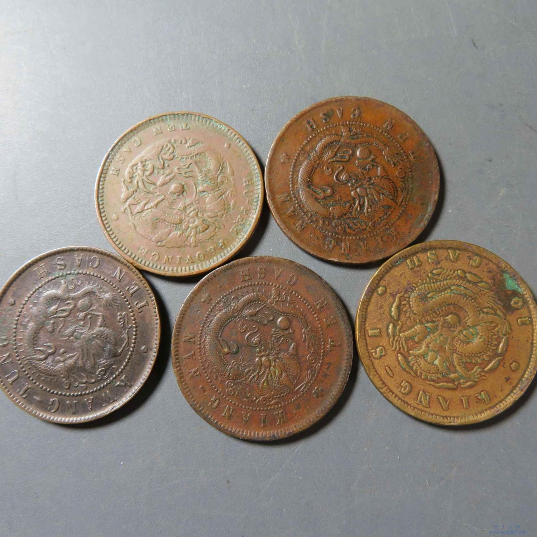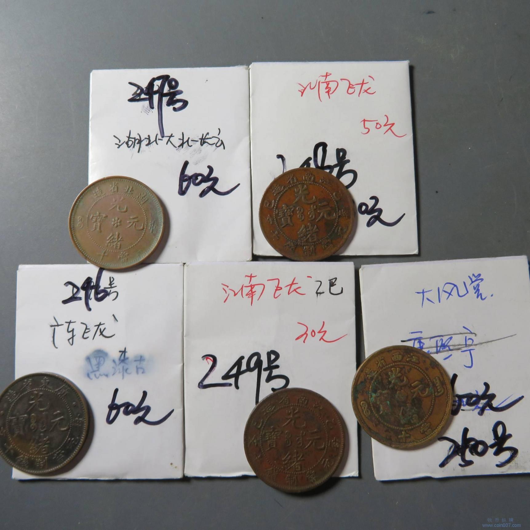 五夜75.老藏家纸袋铜元 5枚 广东 江南等