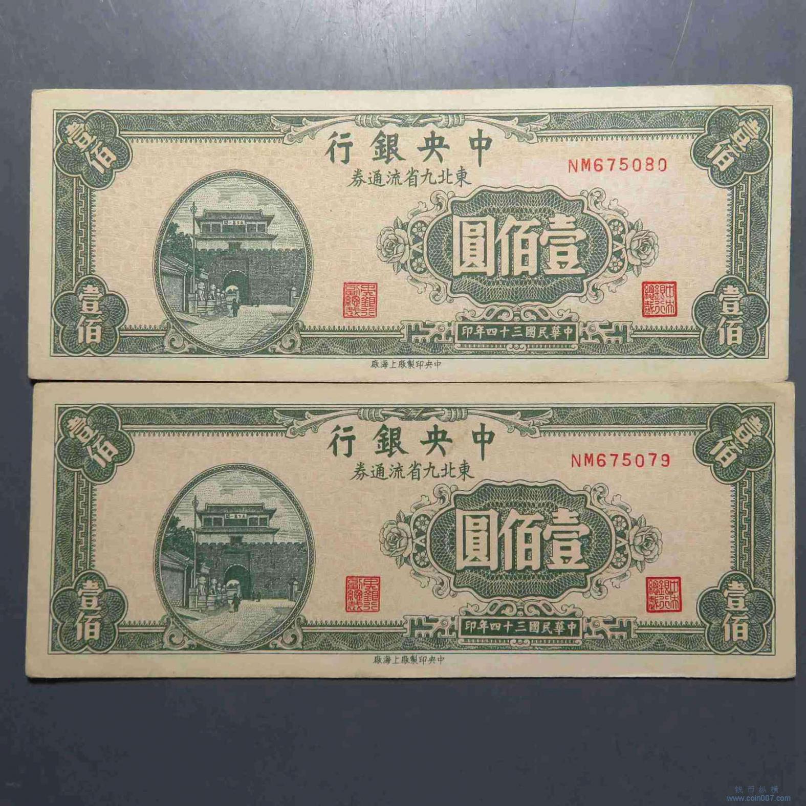 | F0274.中央银行东北九省流通券 壹百元 共2张 |