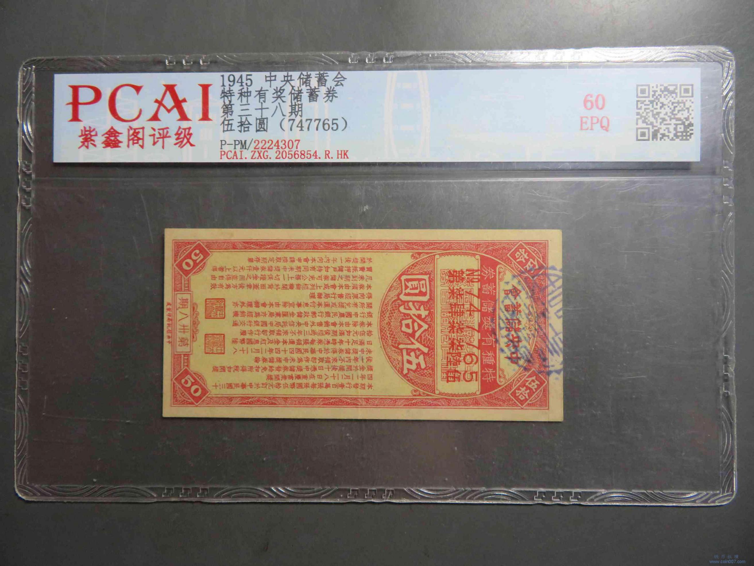 N1082.中央储蓄会有奖储蓄券 伍拾元 EPQ60 |