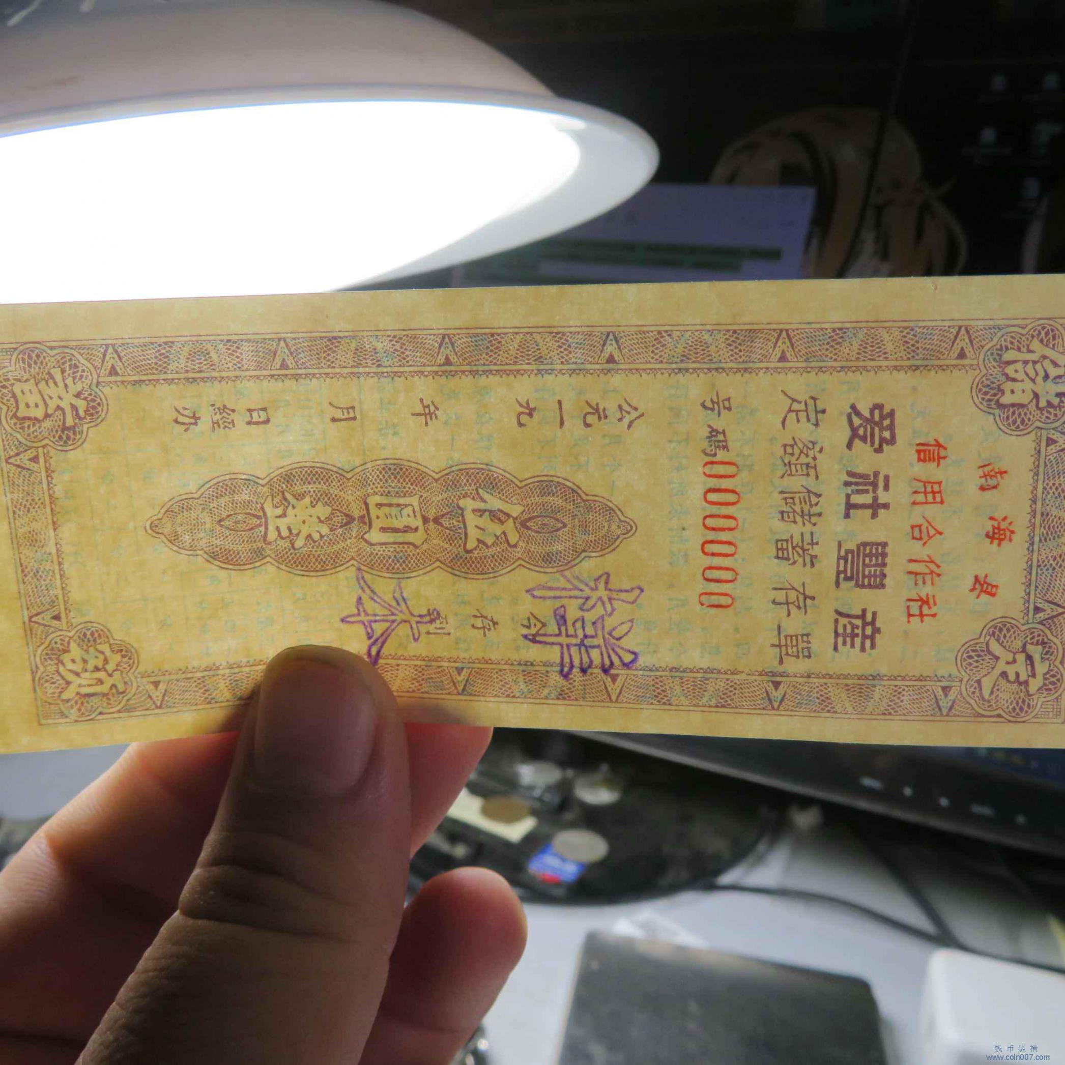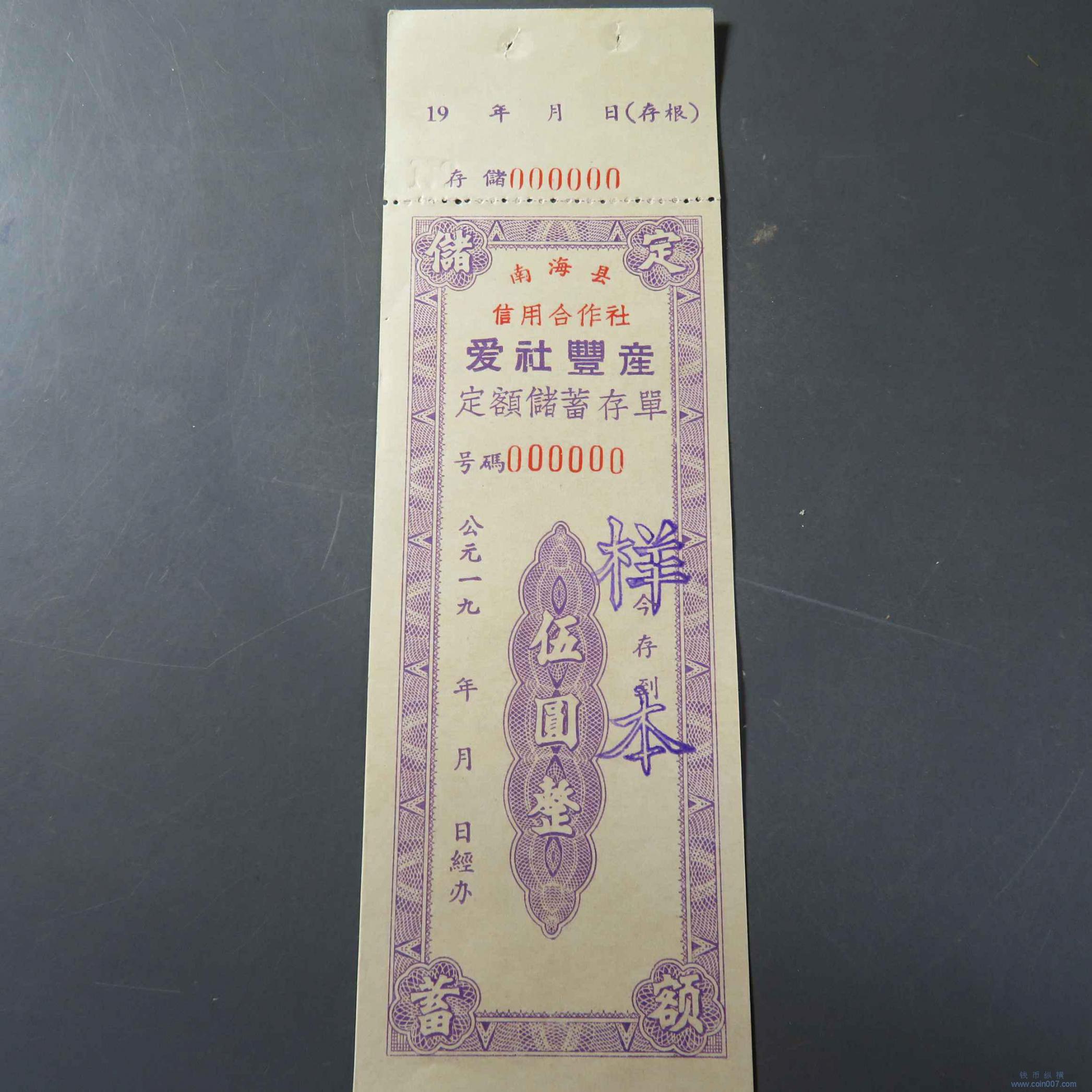Q0122.南海县信用社伍元储蓄券票样