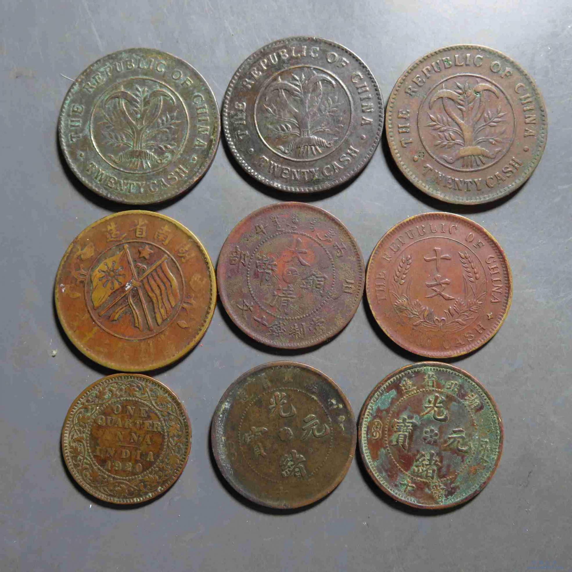 拍品27.各类铜元9枚 胸无云 当二十文铜元等