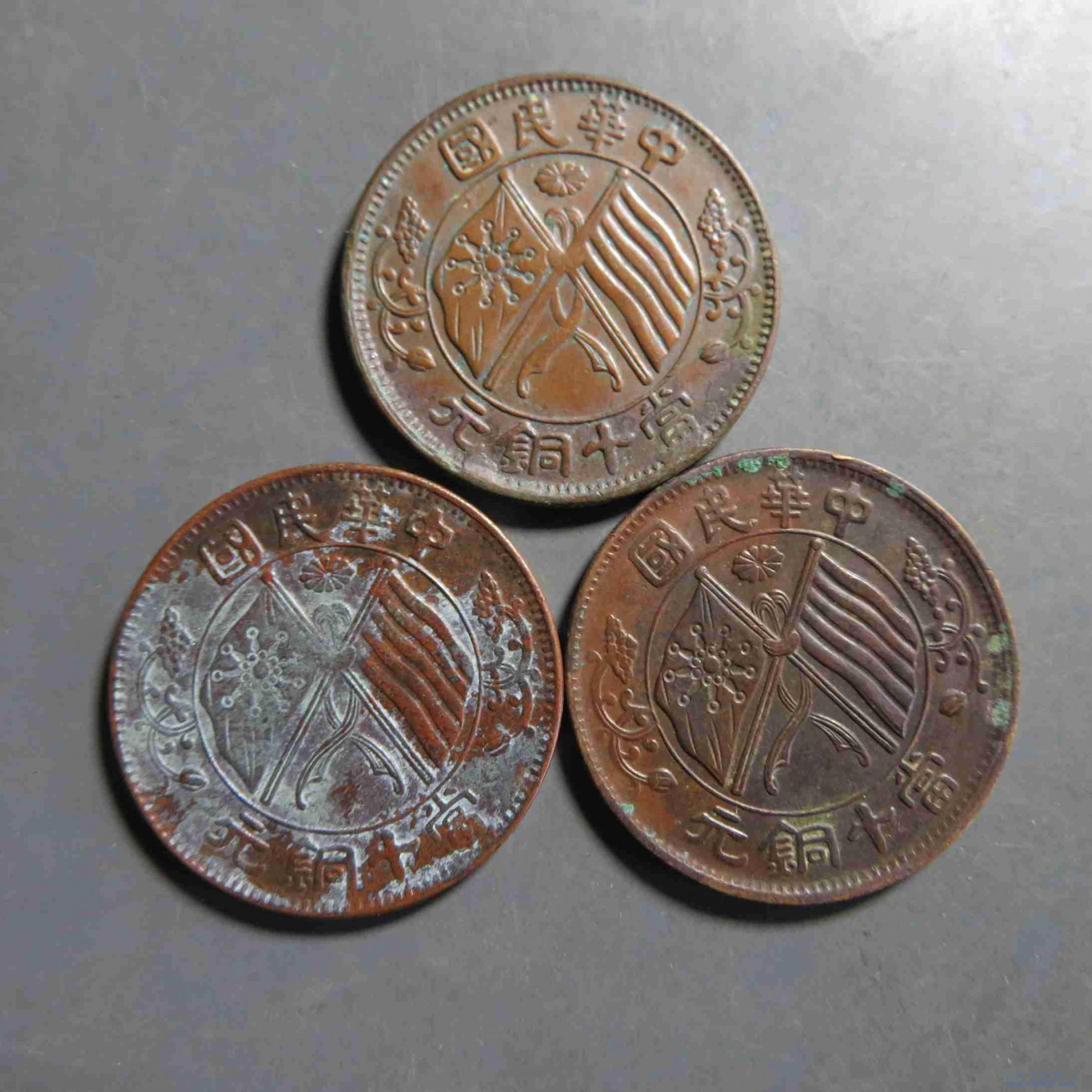 拍品2.湖南双旗铜元 美品3枚