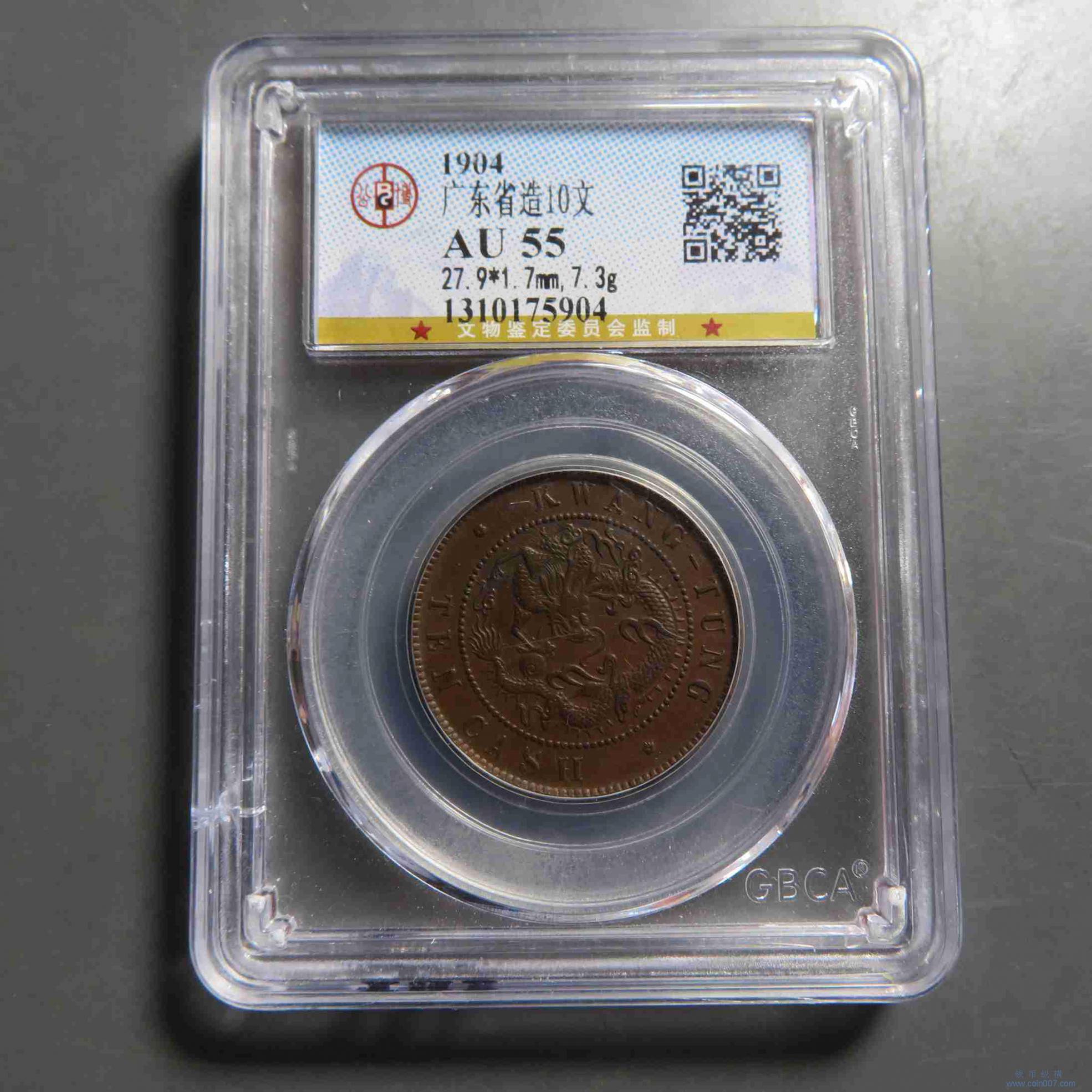 拍品14.广东十文 AU55 极美品