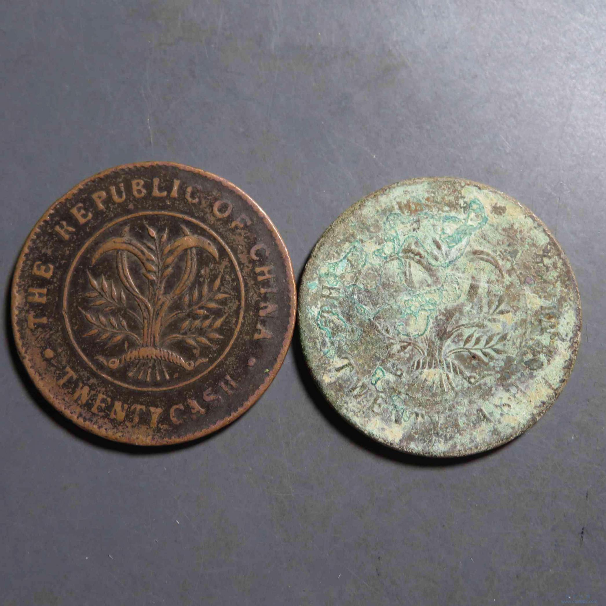 R0160.湖南当制钱二十文 正错配 共2枚