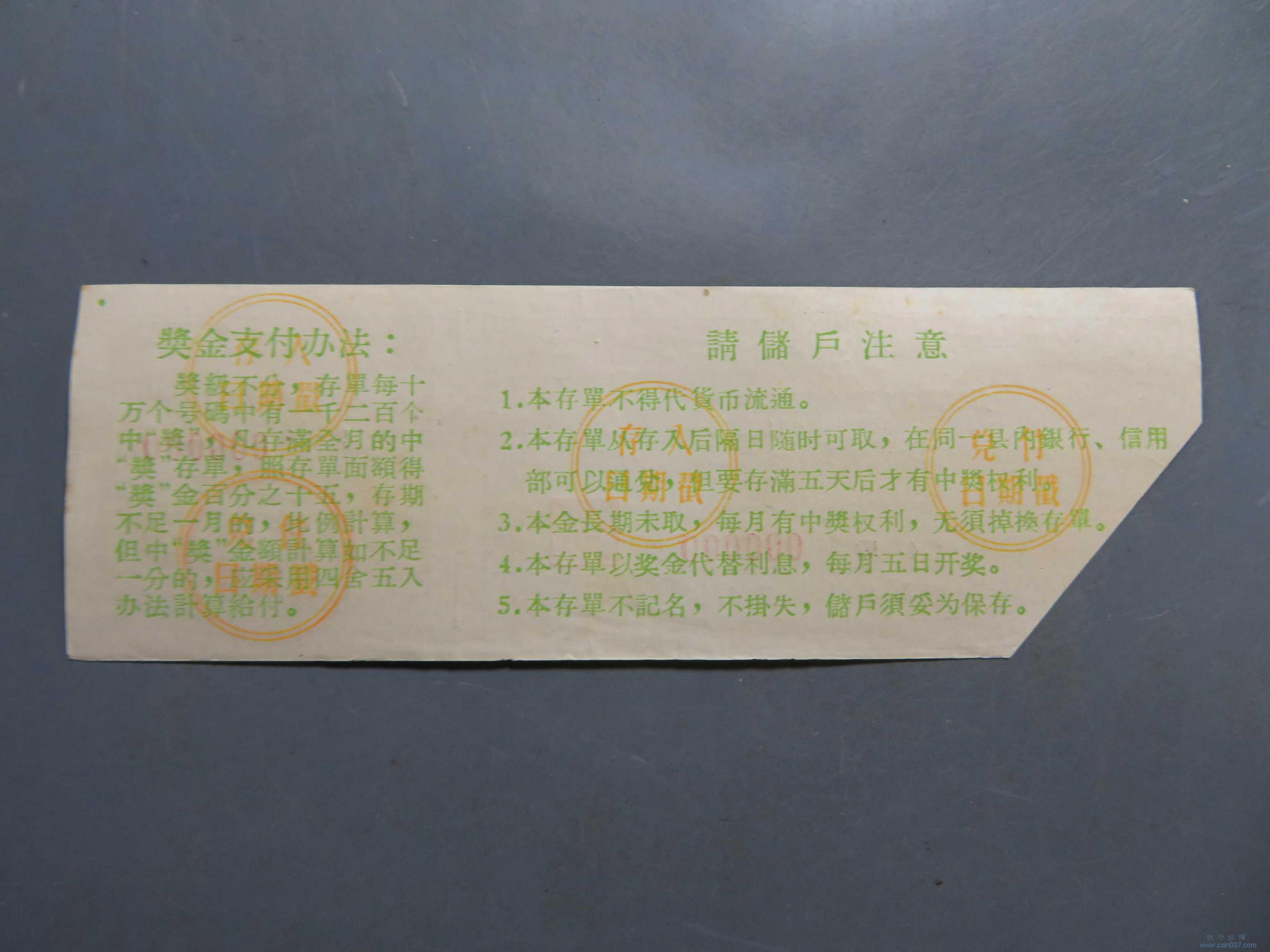T0088.有奖存单 样本票