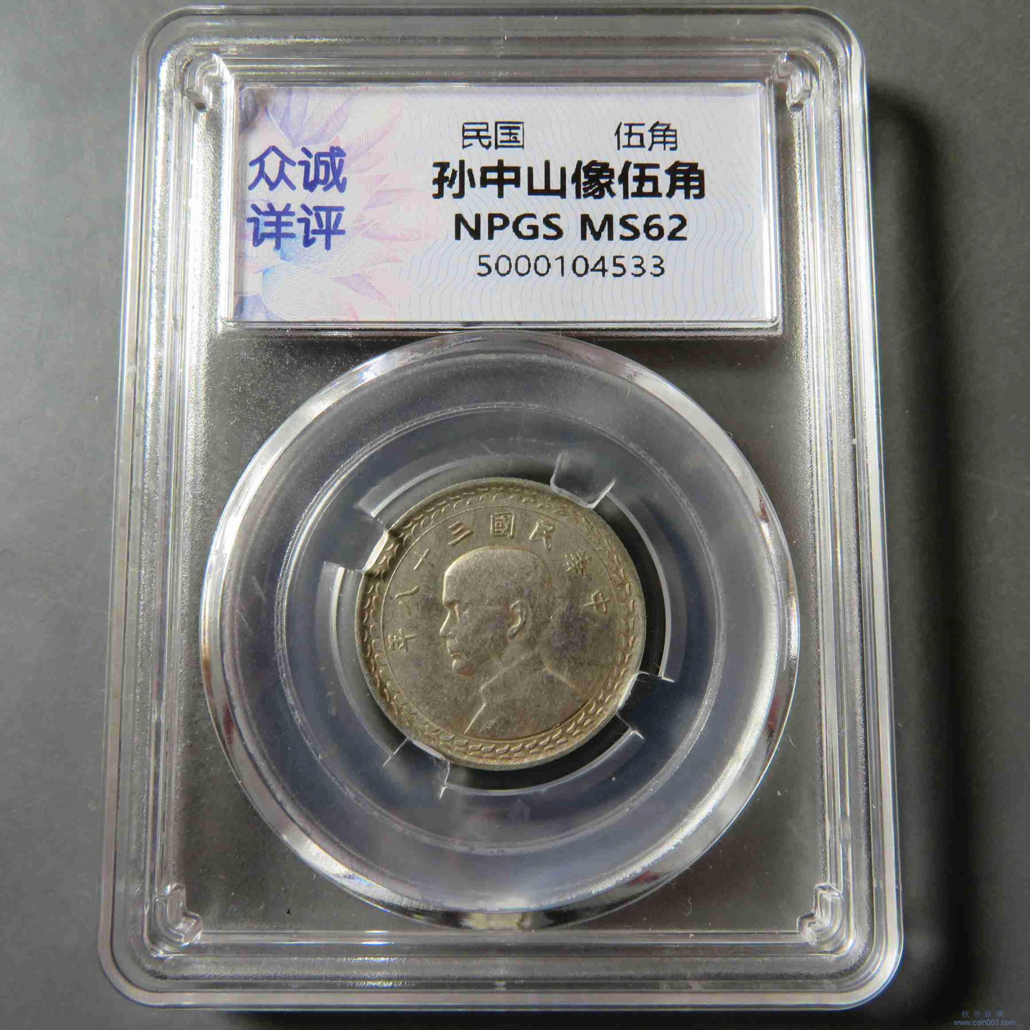 R0964.台湾孙像五角银币 MS62 不退