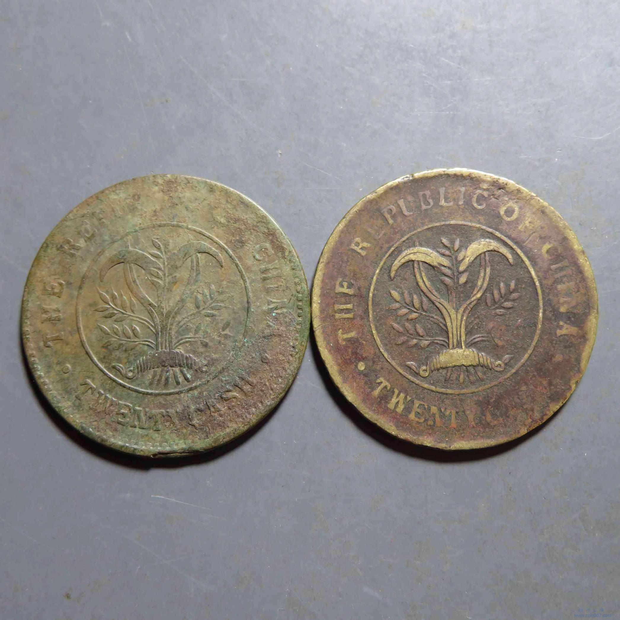 R1017.当二十文铜元 红黄铜共2枚