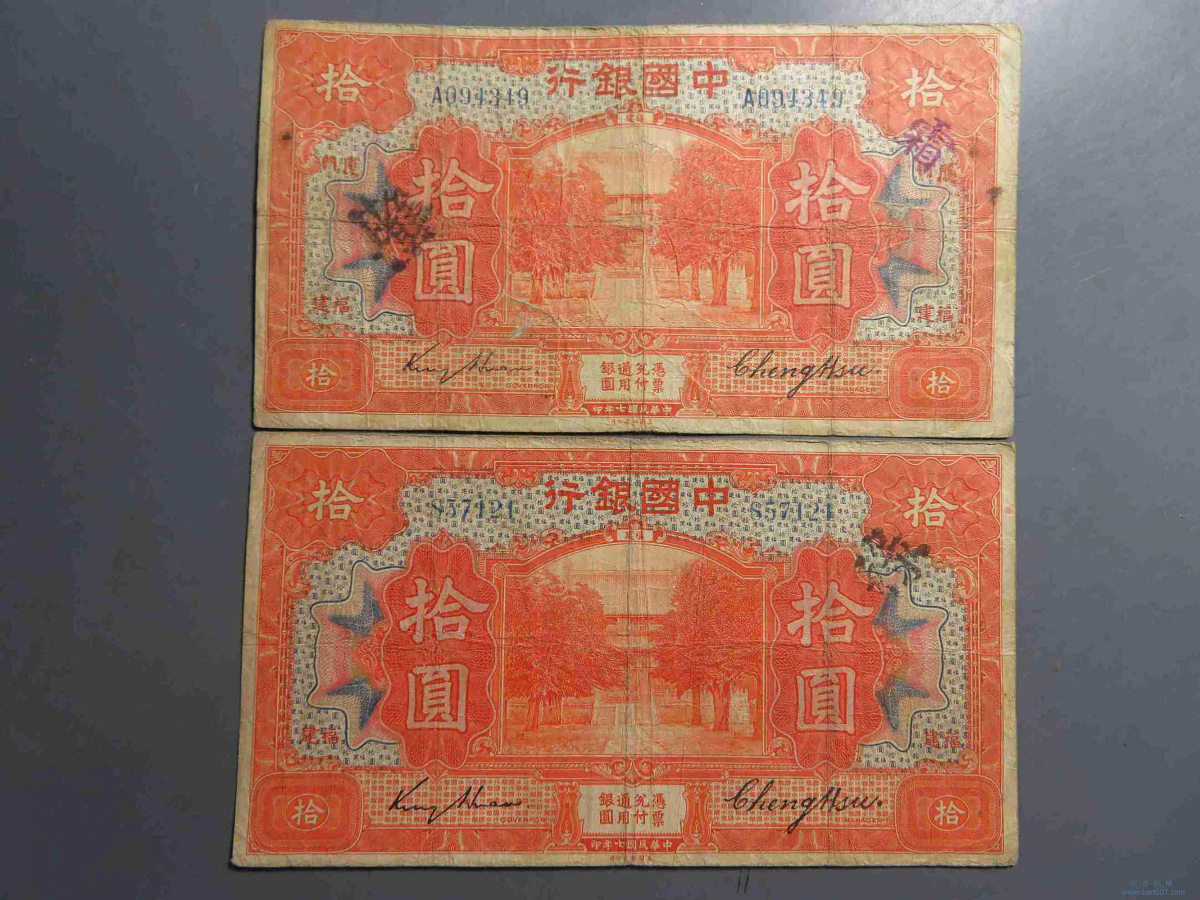| R1034.民国7年中国银行 福建 福建厦门美钞版 2张 |