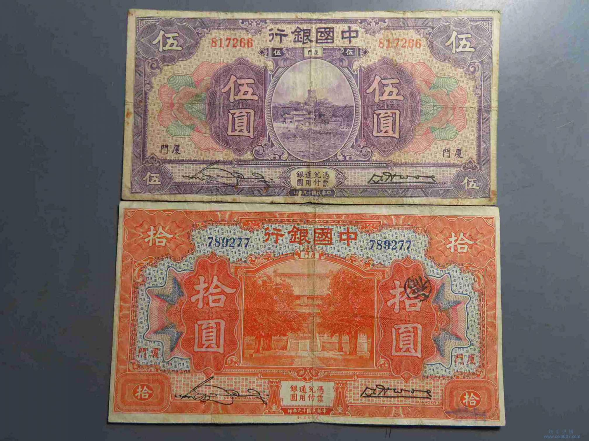 | R1036.中国银行伍元拾元纸币2张 宋汉章签字版 |