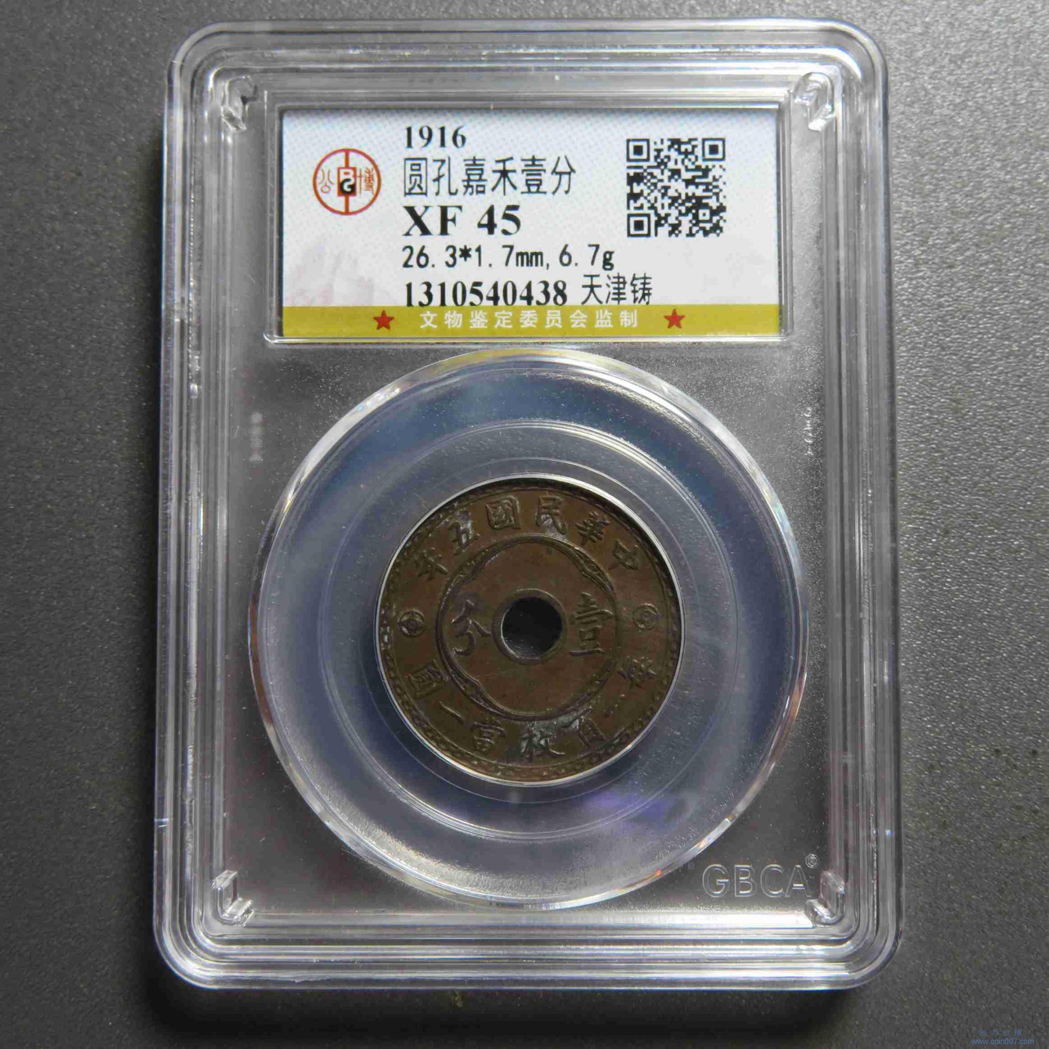 R1153.民国五年圆孔壹分 XF45