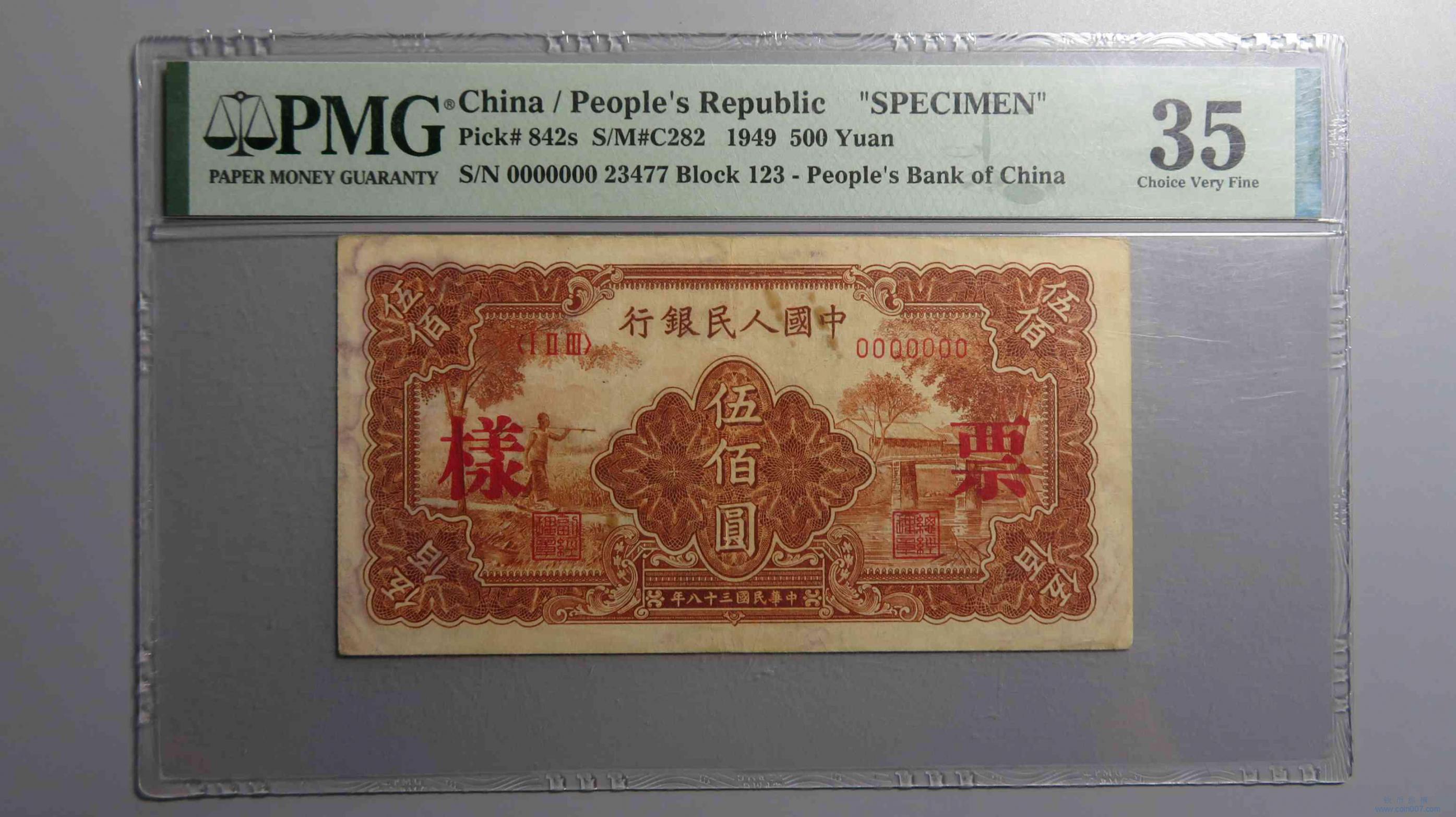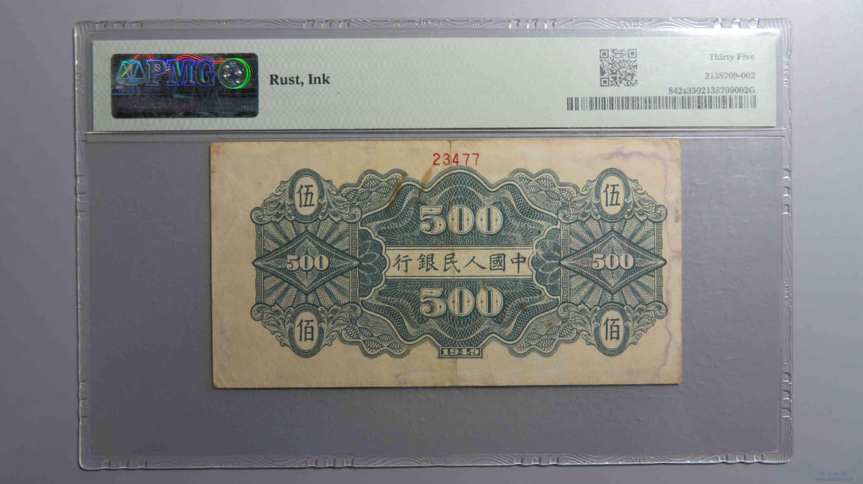 | R1515.1949中国人民银行五百元票样 PMG35 |