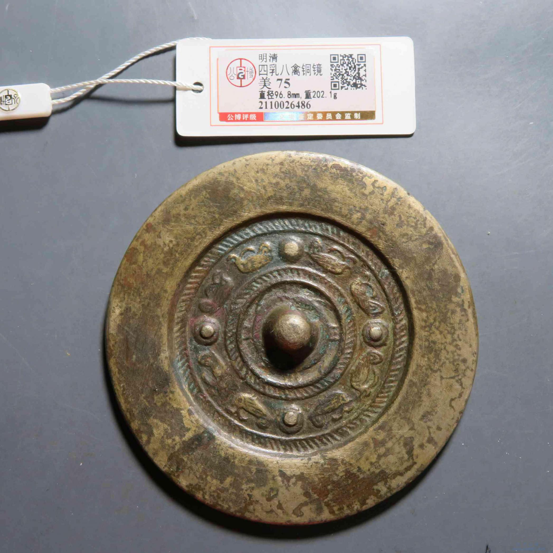 拍品46.评级四乳八禽铜镜 75分
