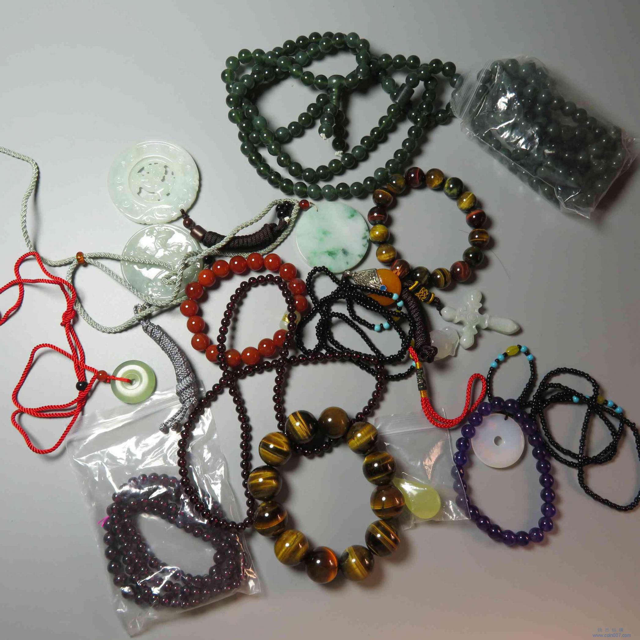 拍品3.杂项 各类珠宝手串玉件等一组 不退