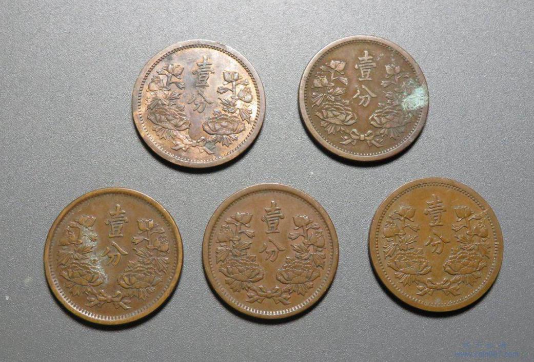 拍品19.满洲壹分 5枚