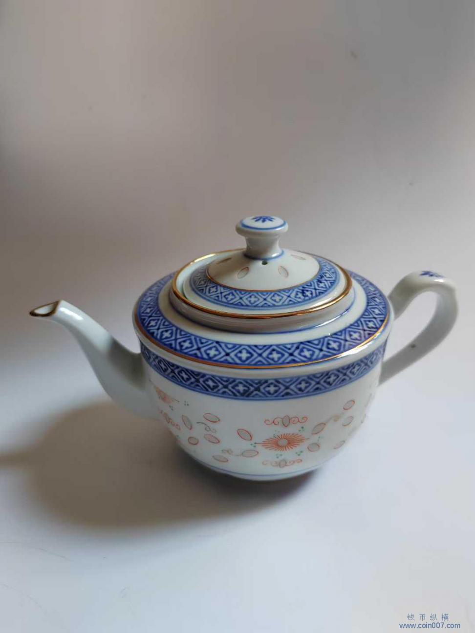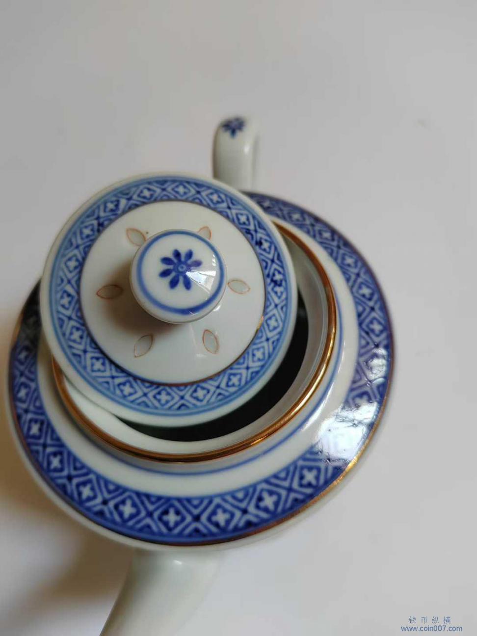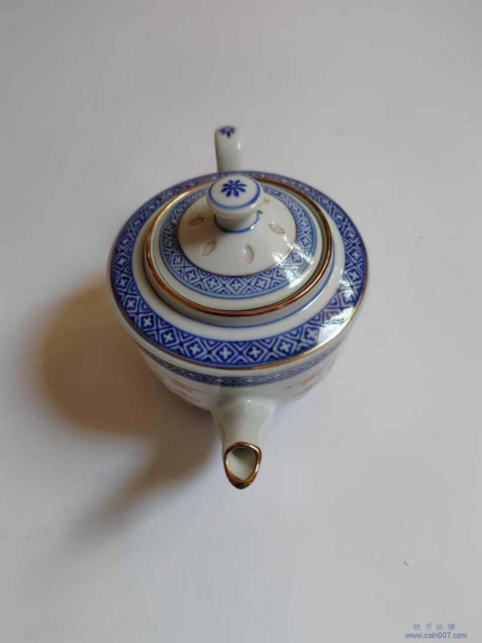 567瓷 青花描金玲珑 茶壶