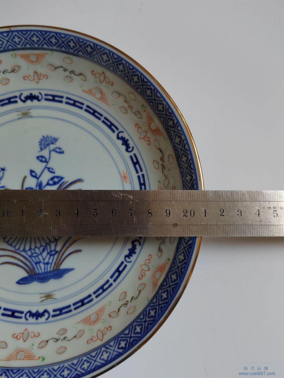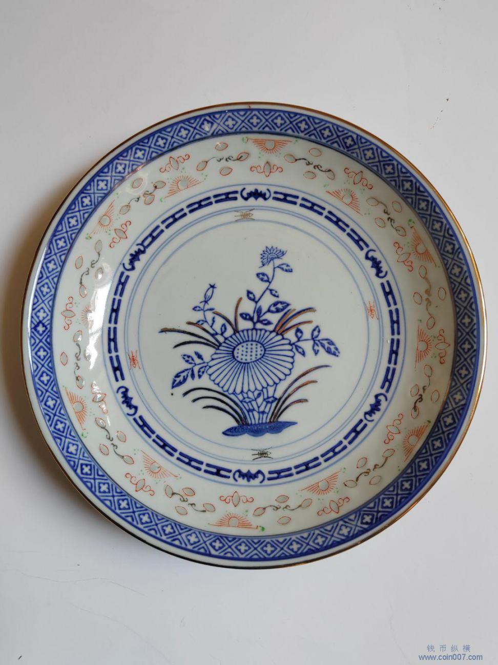 567瓷 青花描金花卉盘直径21厘米