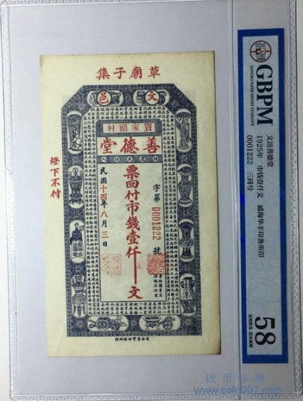 文邑宝家头村善德堂壹仟文