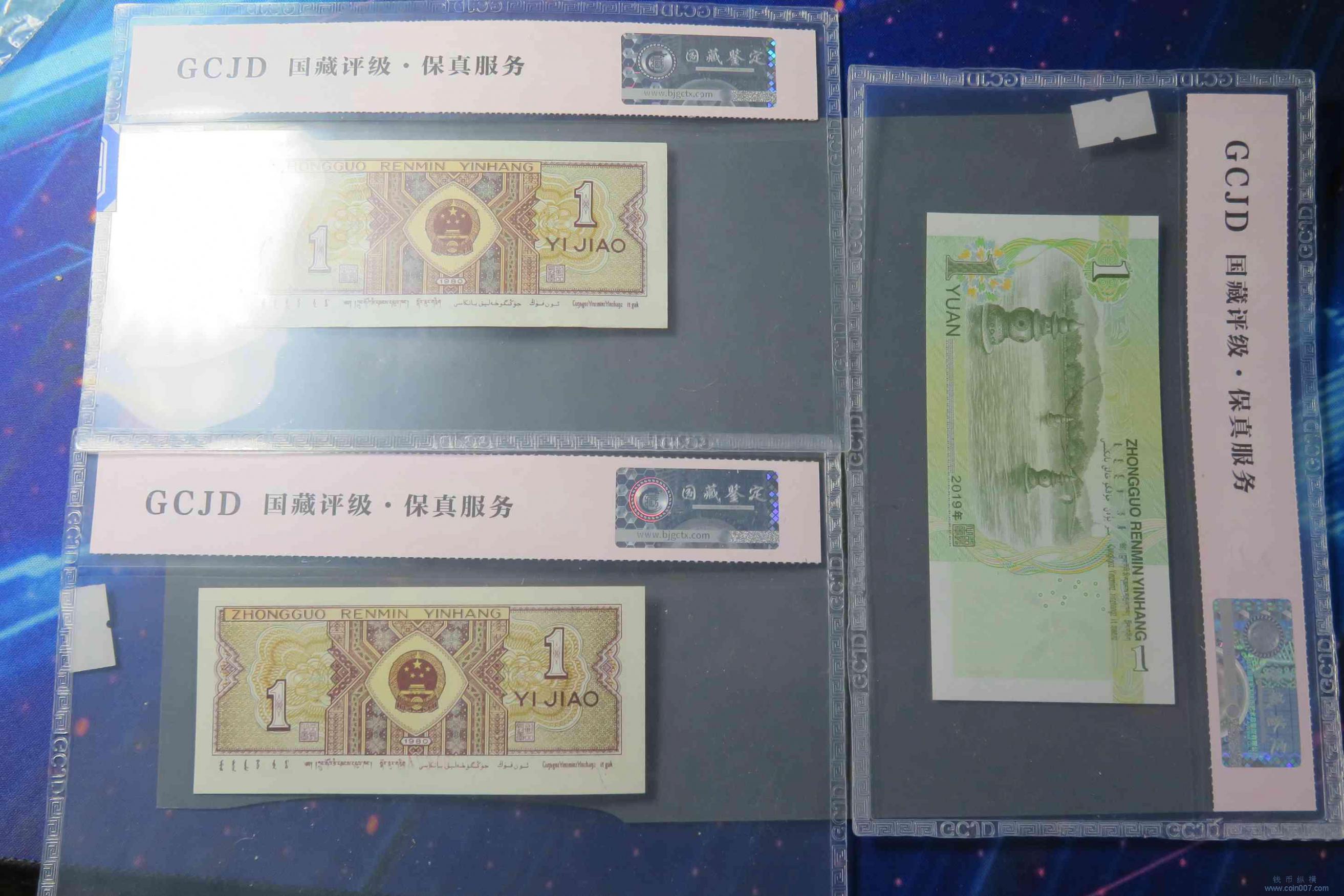 W0123.四版纸币壹圆壹角 3张 评级币
