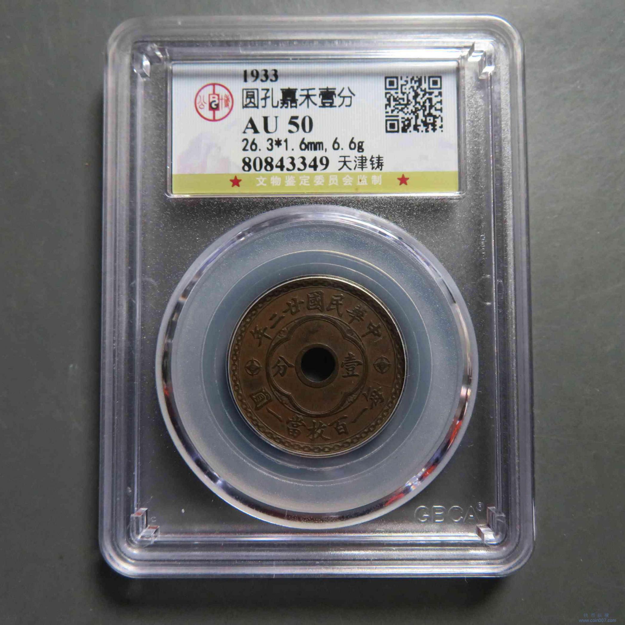 拍品13.圆孔壹分 AU50