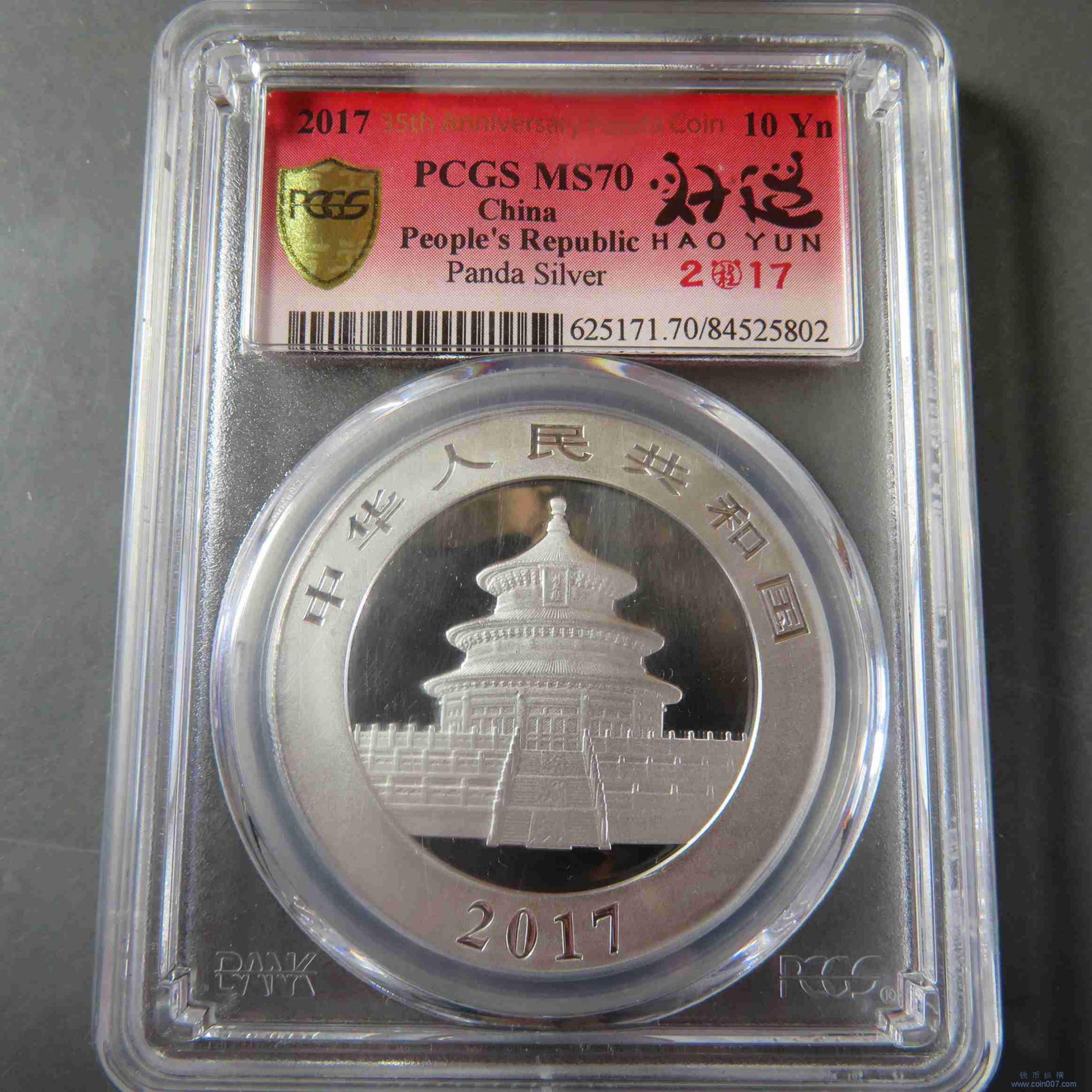 Z0025.2017年熊猫银币拾元 PCGS MS70