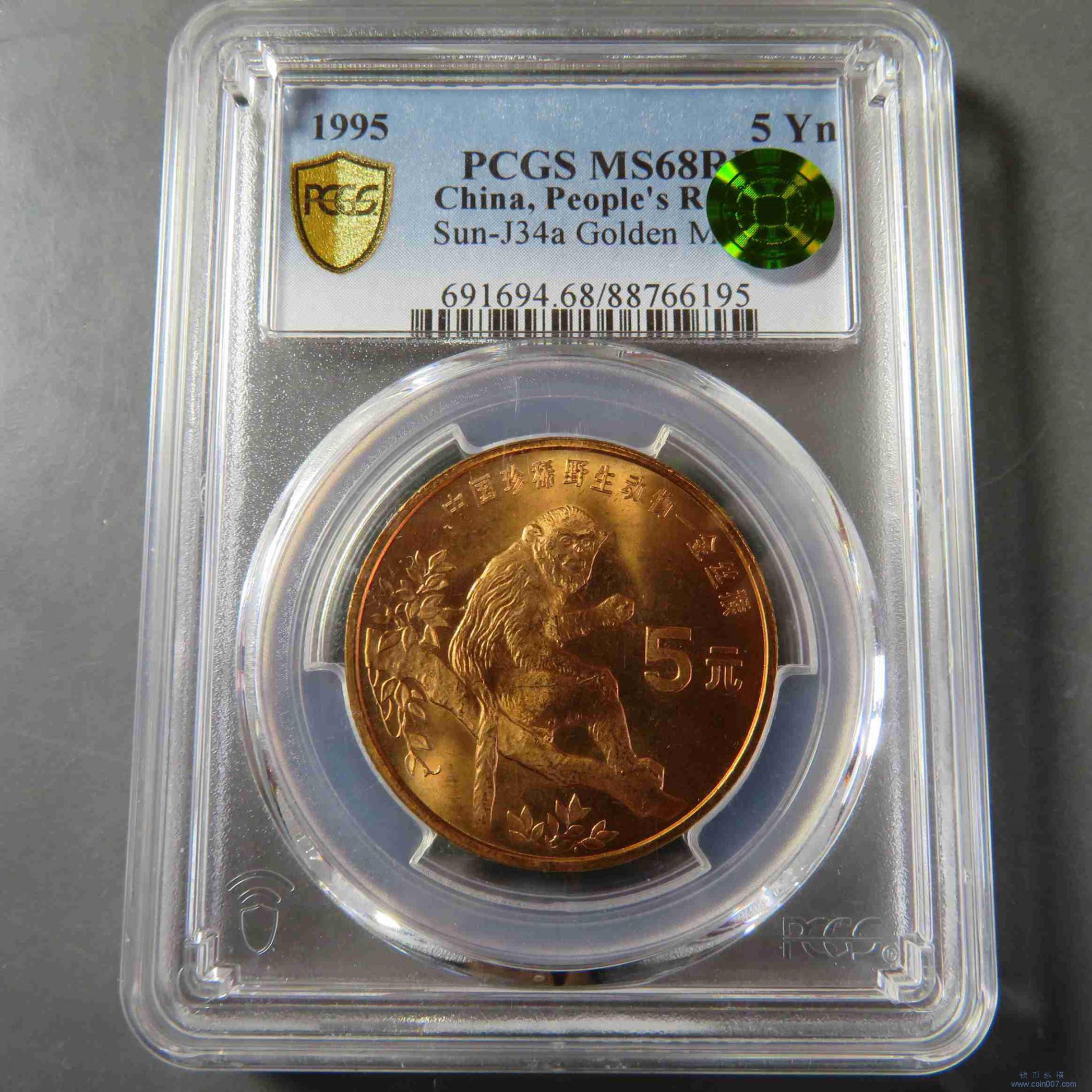 Z0036.珍稀动物伍元金丝猴 PCGS MS68