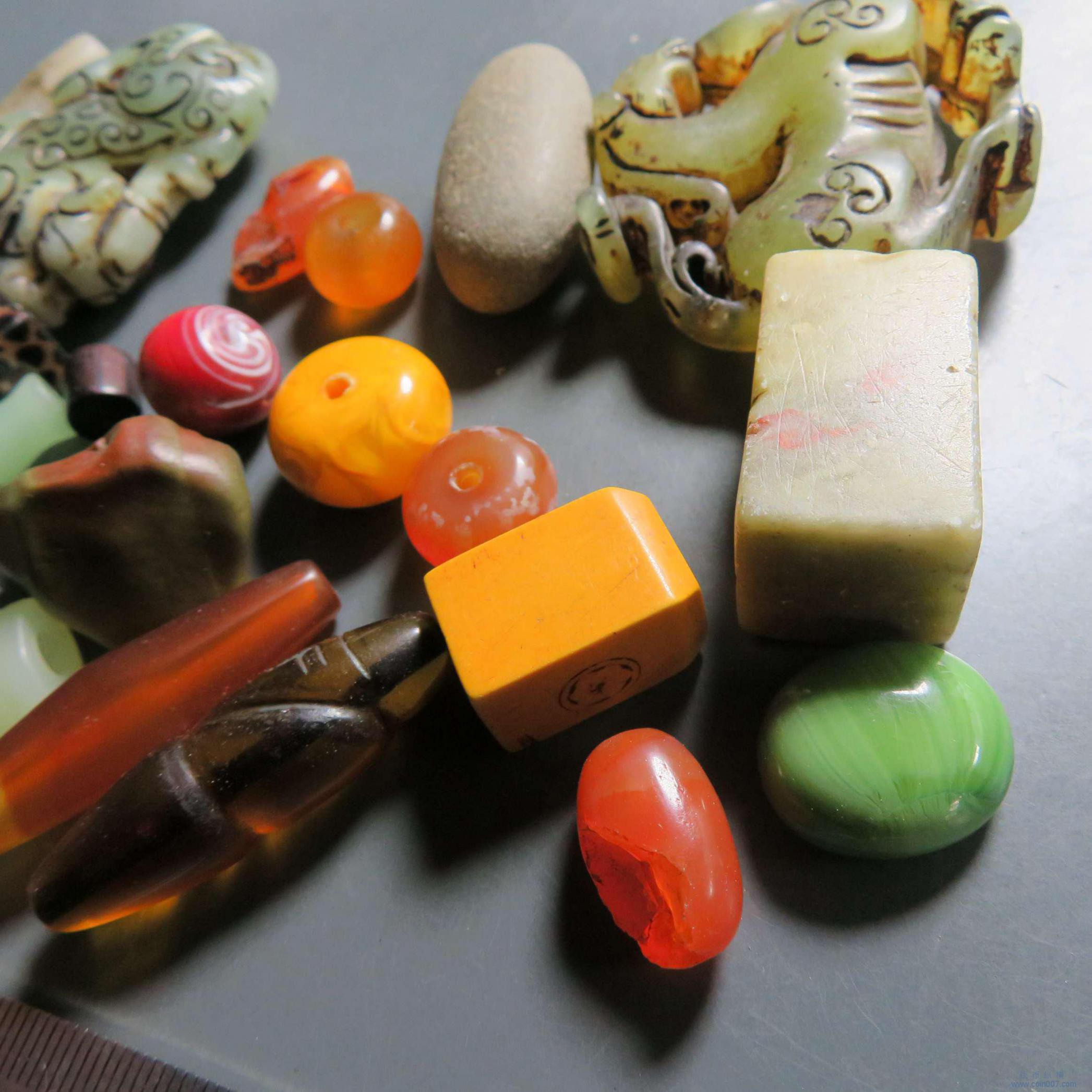 拍品2.各类珠子印章 玉件一组 不退