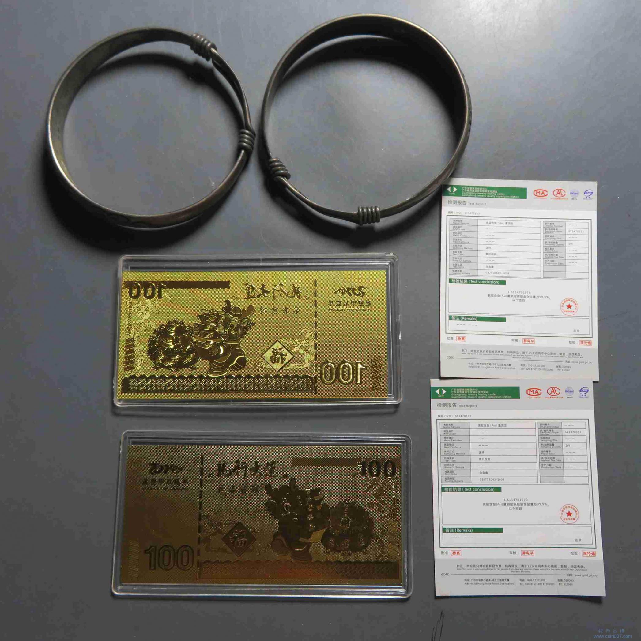 拍品3.杂项金钞手镯2件 不退