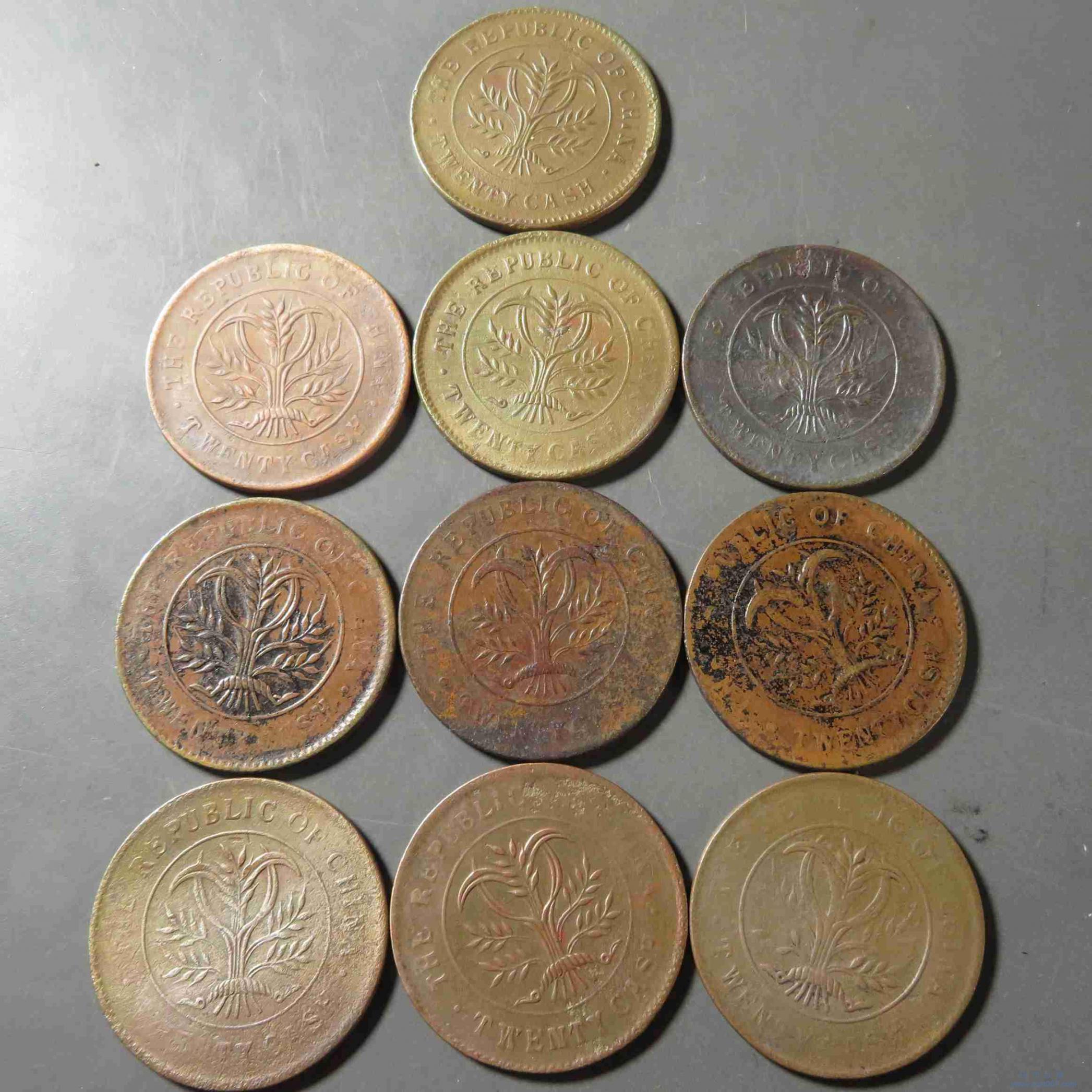 W1127.湖南双旗二十文 10枚