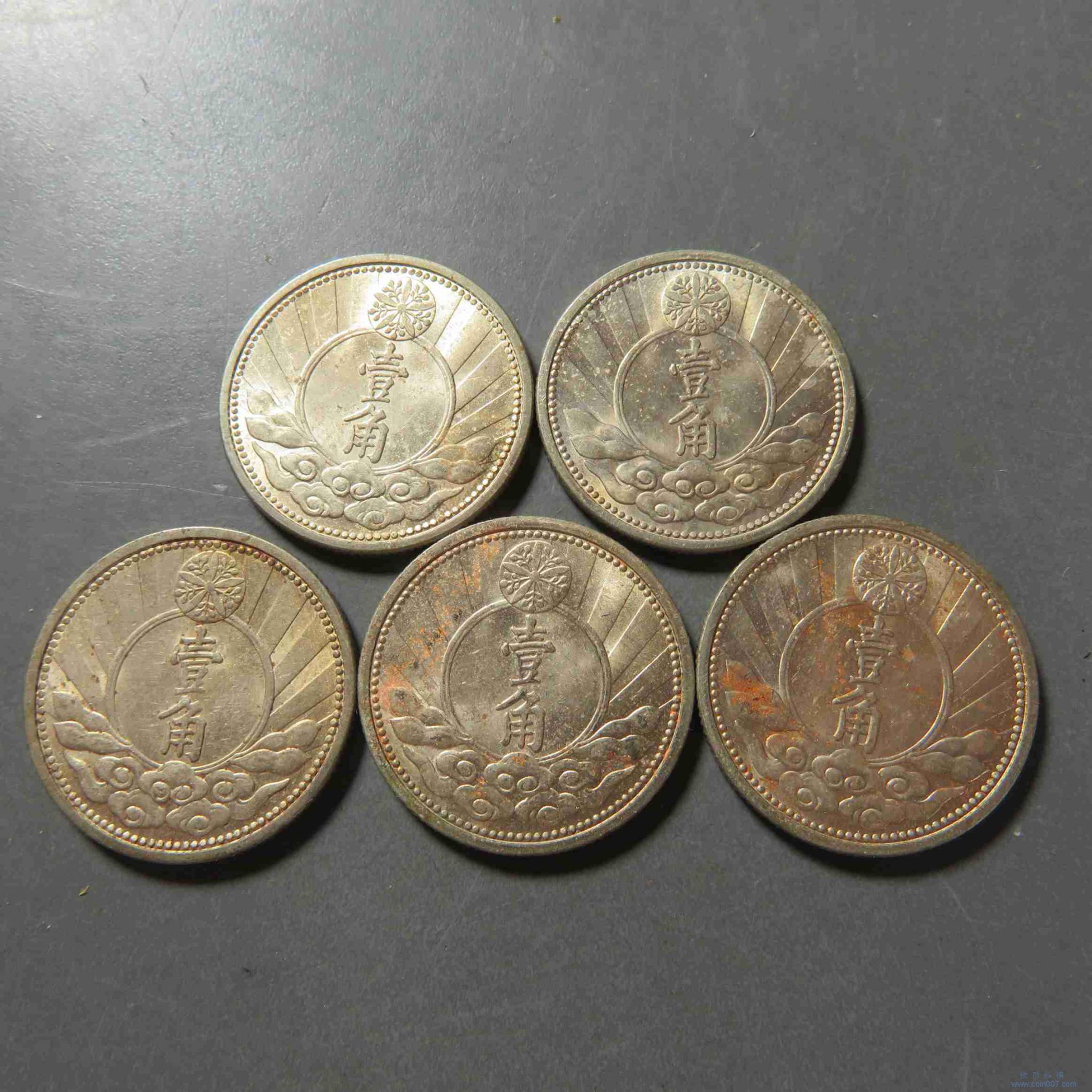 拍品16.满洲双马头壹角镍币5枚