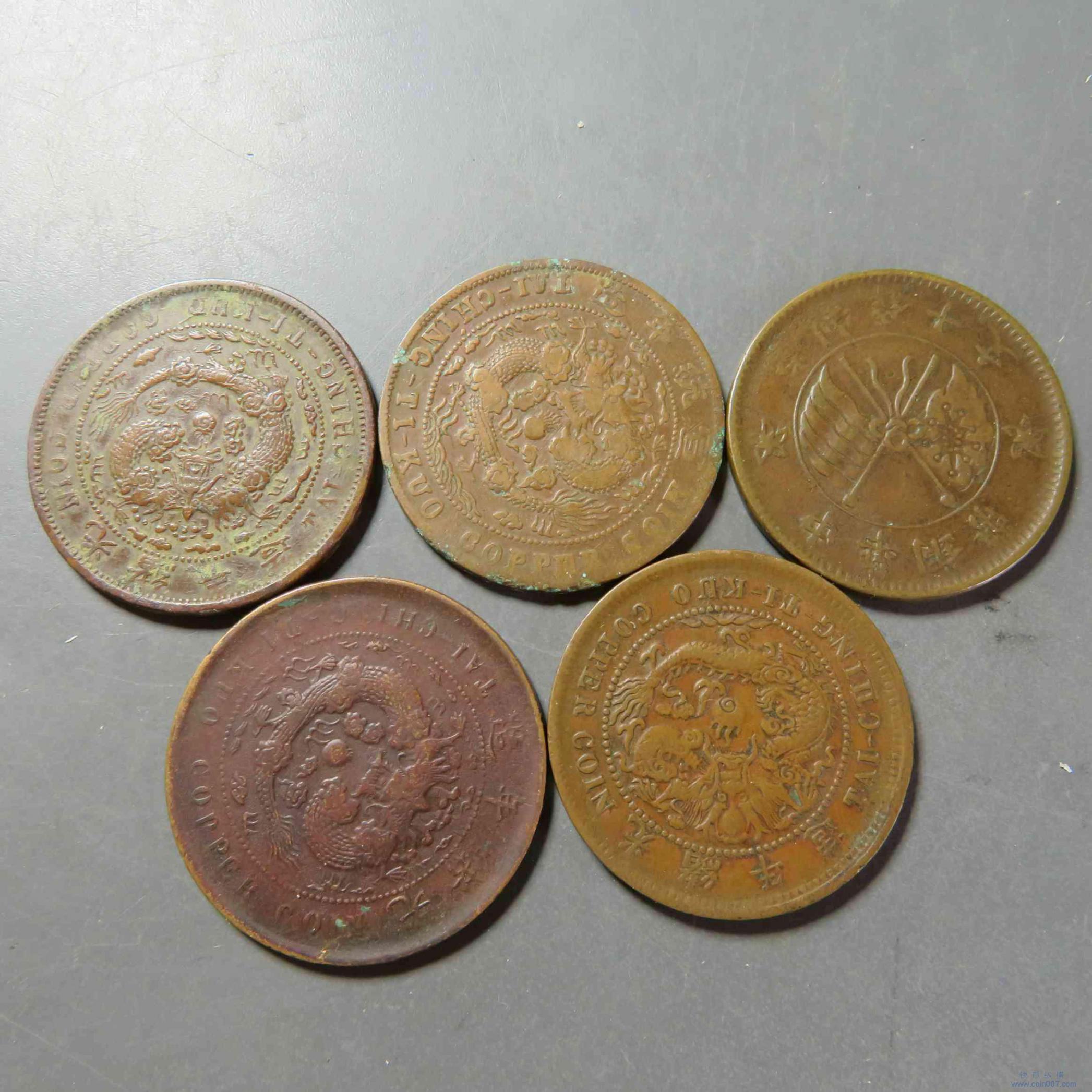 拍品35.版别铜元5枚 错满文 赣十文等
