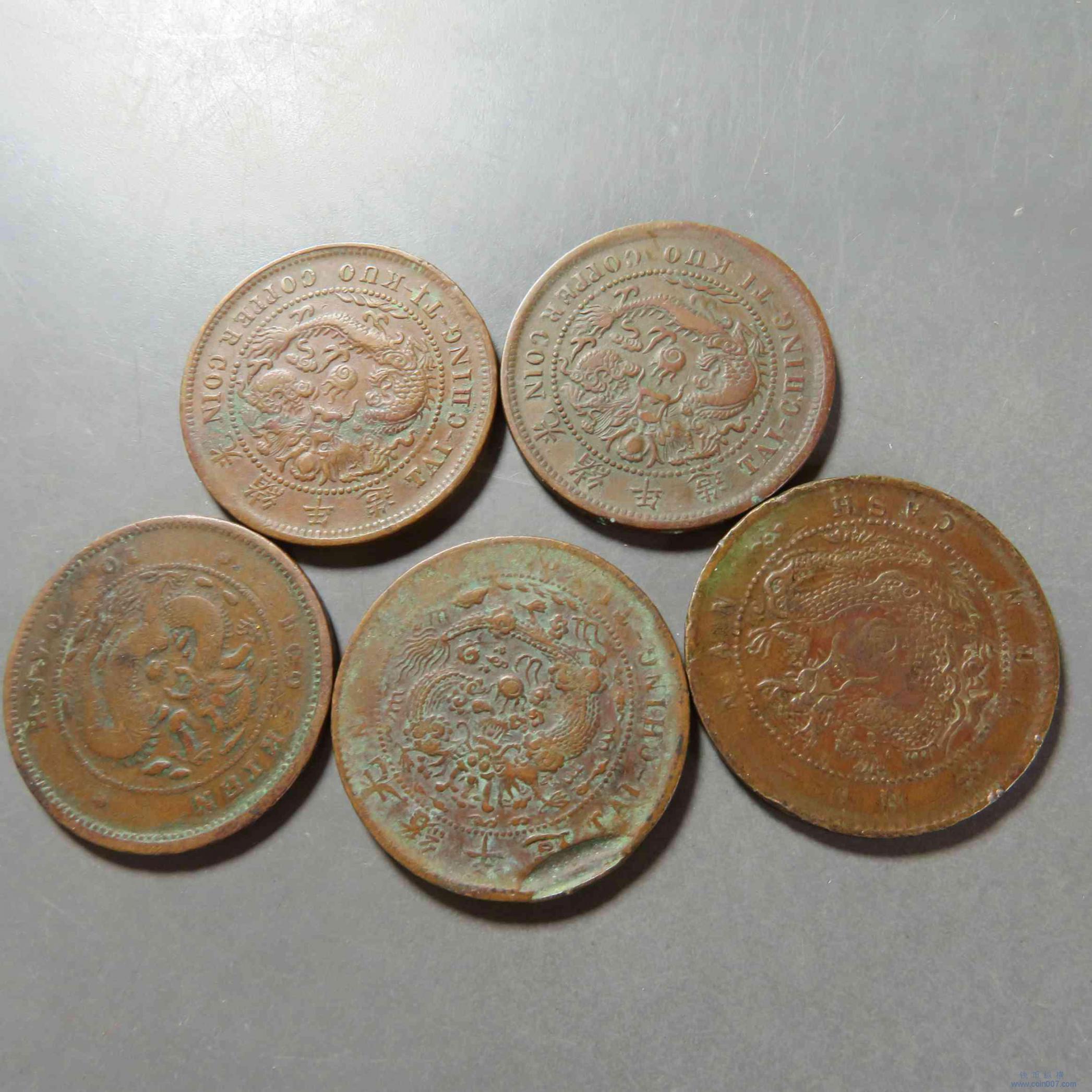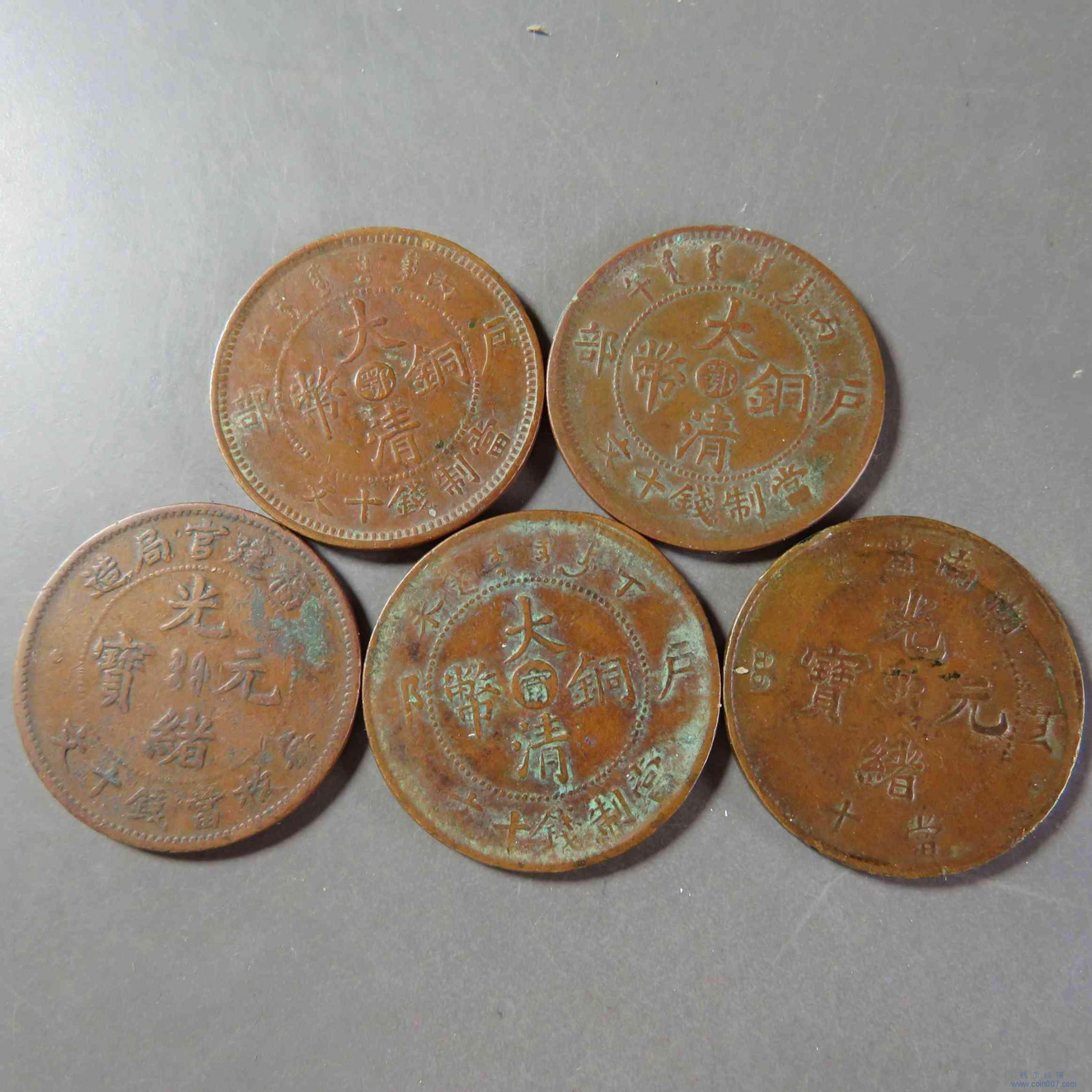 拍品50.版别铜元5枚 湖南大火珠 鄂十文等