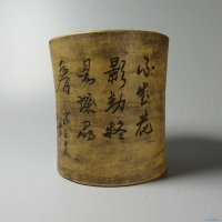 T0071.铁画宣 紫砂笔筒 高13.0*11.7cm左右